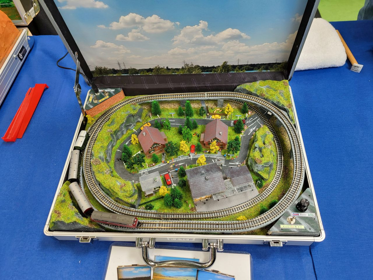 Mein Sohn und ich waren mal wieder auf einer Ausstellung. DIesmal nur ein paar Km von daheim weg in die Sporthalle des Gymnasiums. Hier tummelten sich mehrere Anlagen, Händler und ferngesteuerte Autos. U.a. wurden auch ein paar Anlagen durch Peter Röpke aus Sandhausen gezeigt. Vor kurzem war die Frage nach seinen Anlagen hier im Forum.