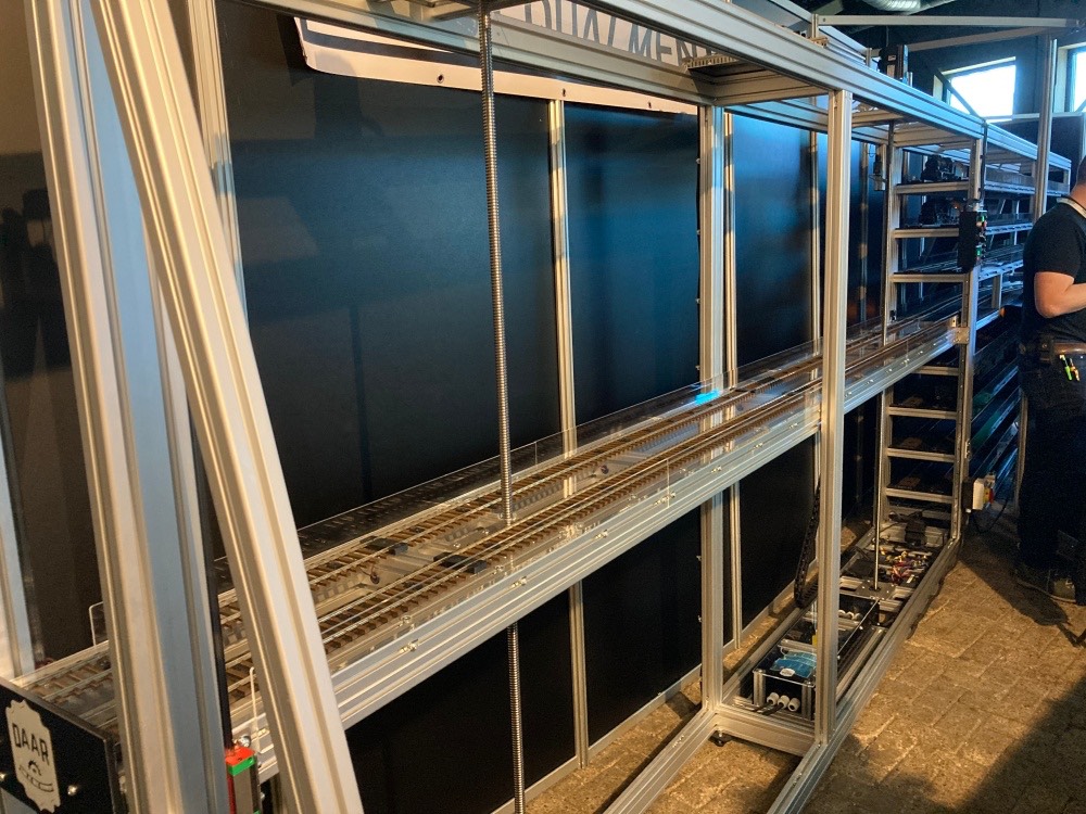 Der Lift zum Schattenbahnhof war offen zum Zuschauen wie die Züge hoch/runter bewegt wurden und dann auf die Strecke oder in das "Speicherregal" fuhren.