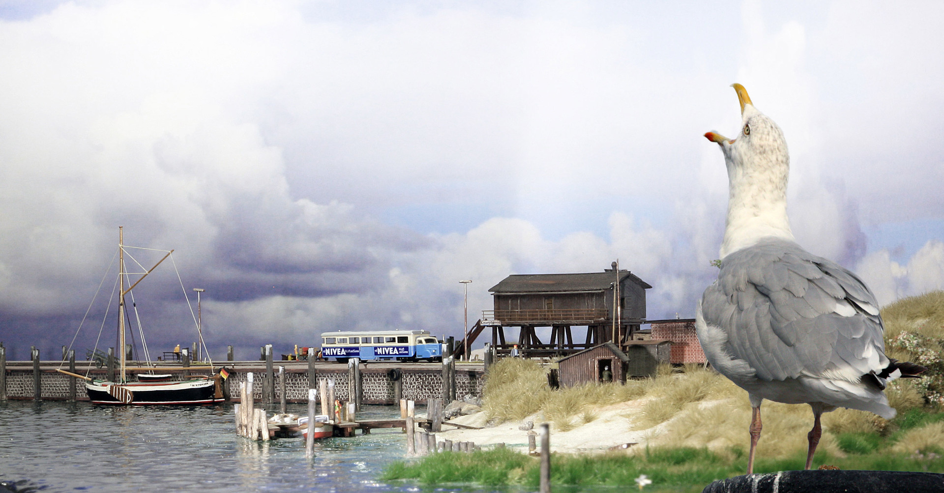 Die „Alweg – Bahn“ ist im technischen Bereich weitgehend fertiggestellt und fahrbereit. Diese Einschienenbahn ist ein Novum im Modellbahnbereich. Abgerundet wird die Präsentation durch die zwei äußerts fein gestalteten Z – Großanlagen „Kniephaven“ und „Old Port Shop“.