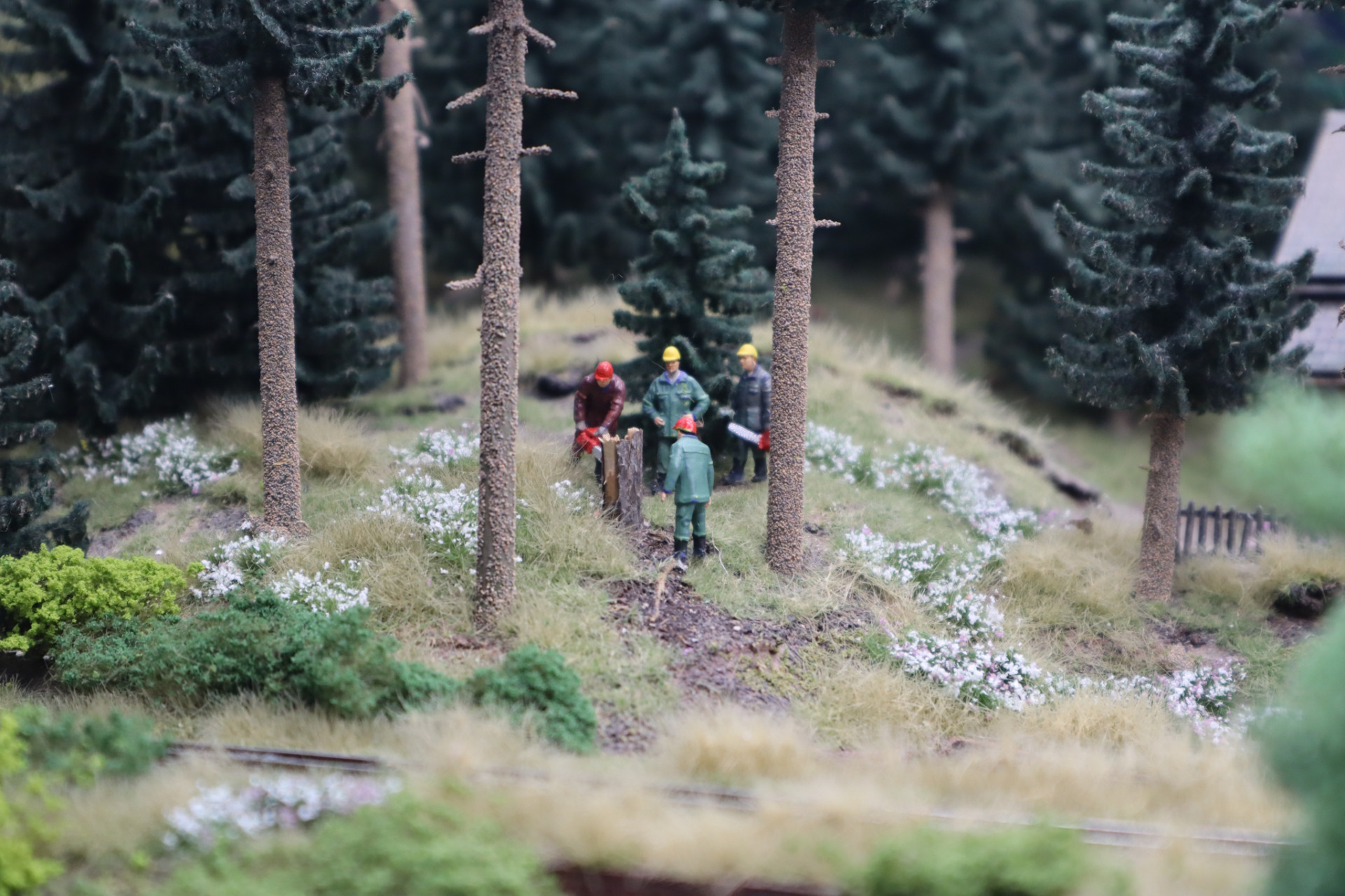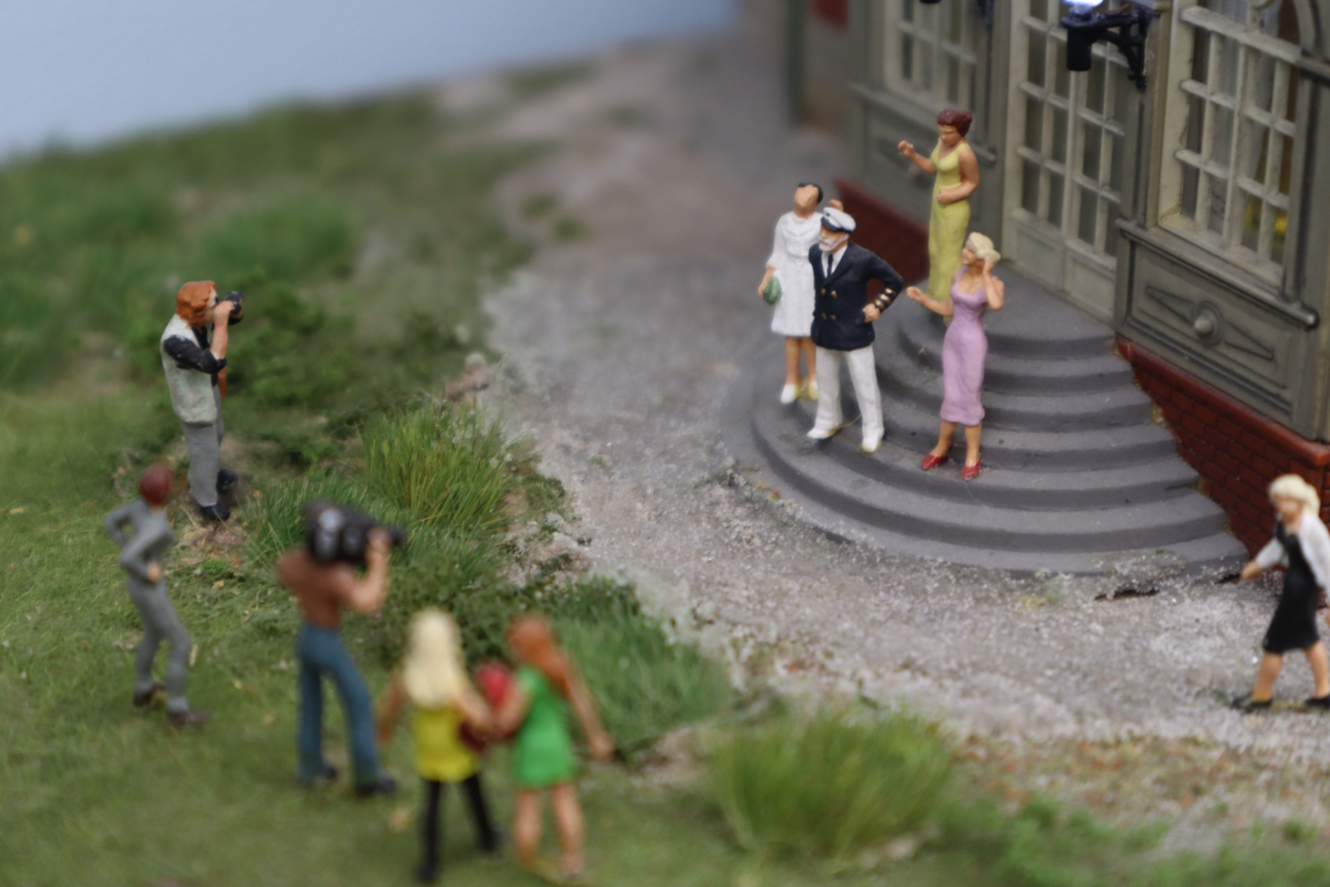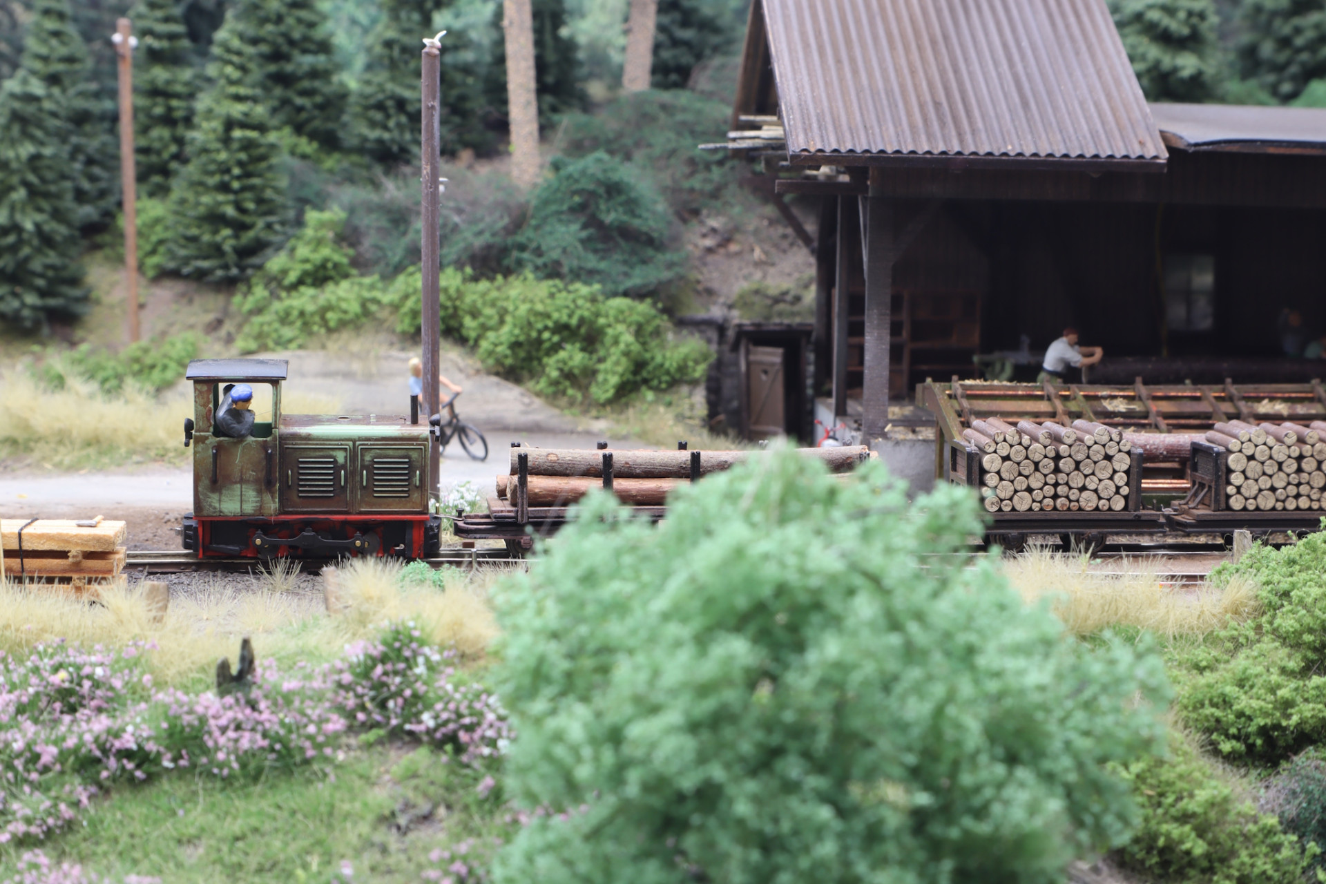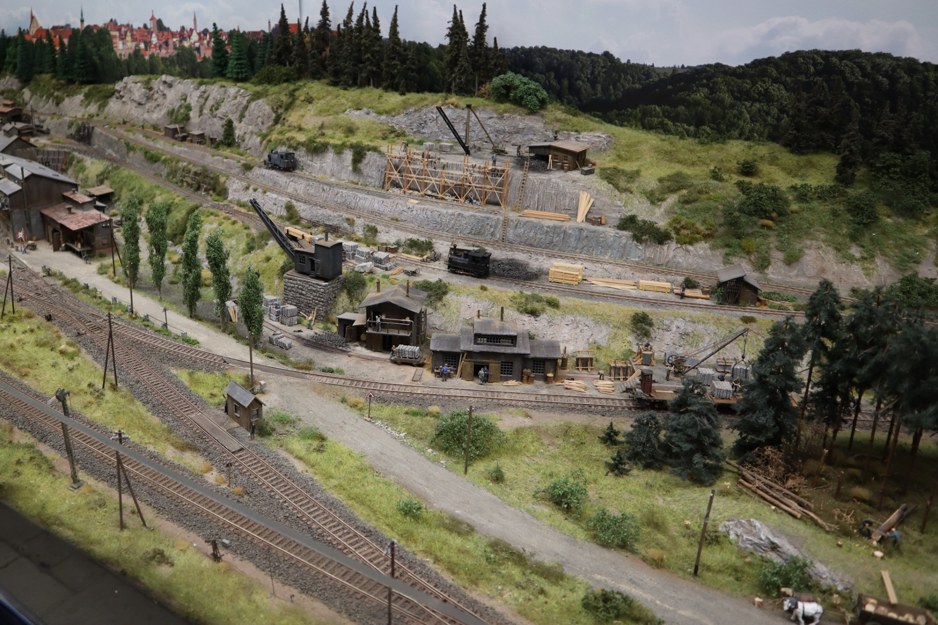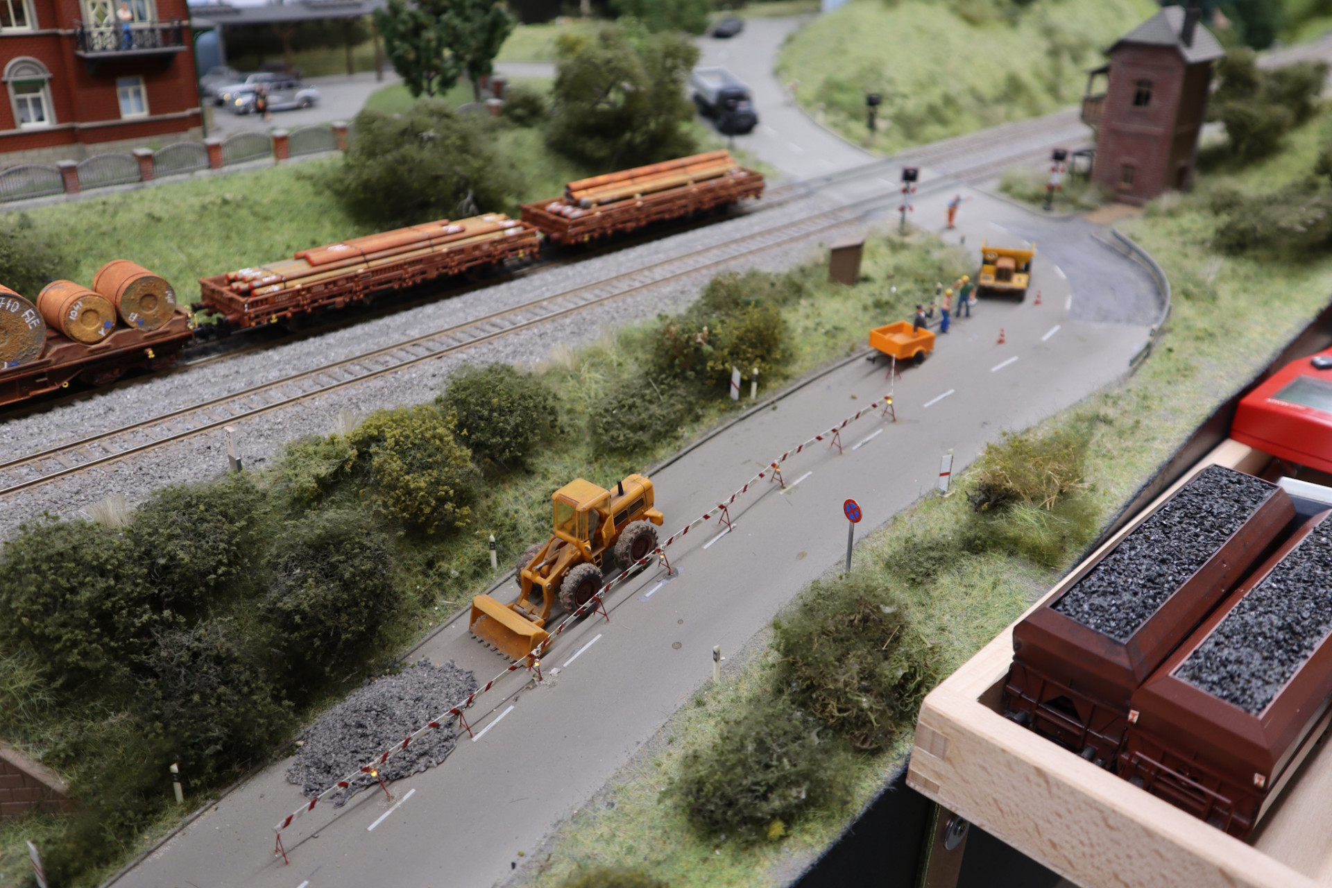 Eine Info speziell für unsere Z -Freunde: Wir können euch nicht versprechen, ob „Kniephaven“ und „Old Port Shop“ fahrbereit sind. Hier sind noch umfangreiche Digitalarbeiten im Gange. Immerhin wird aber jedes Exponat mit ein wenig Rollmaterial präsentiert. Zu sehen ist auch das nagelneue 180 cm lange Schaustück “Brightside Yard” nach der finalen „Begrasung und Bewaldung“. Dies ist der ehemalige Schattenbahnhof von Old Port Shop.
