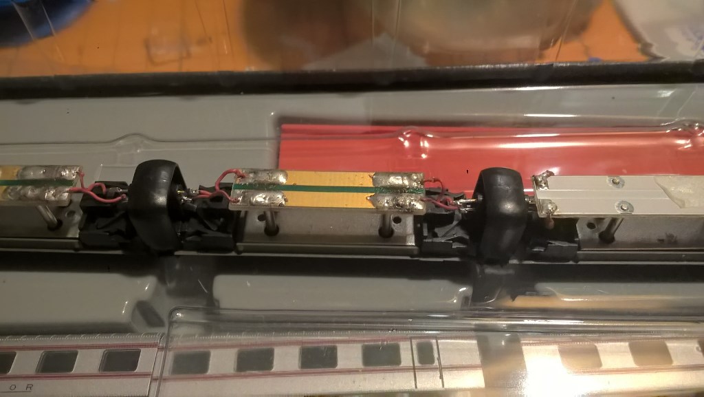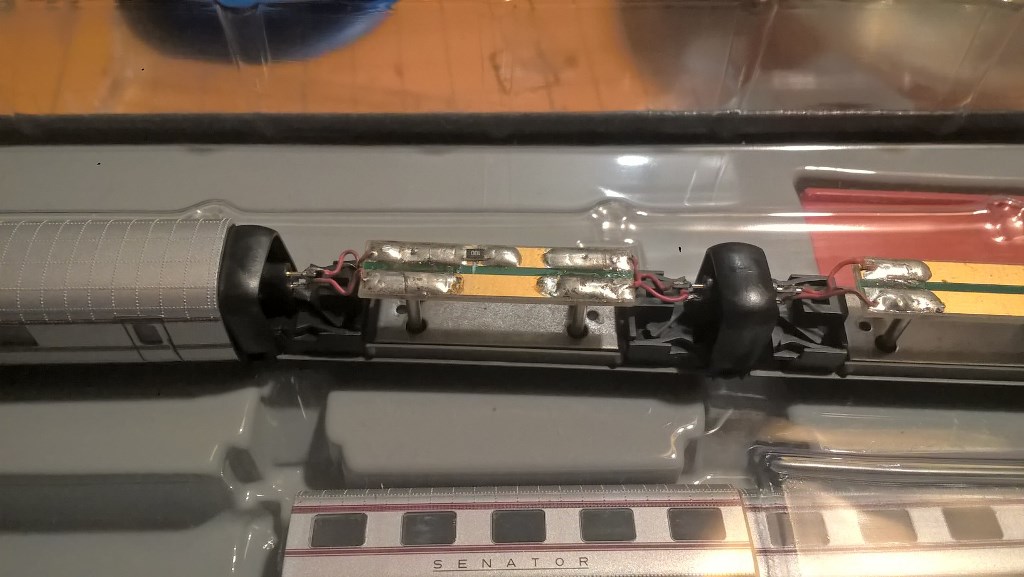 All attached photos are clickable for viewing in full size. Note: I also replaced stock yellow headlight LEDs with warm white ones in the train on these photos.