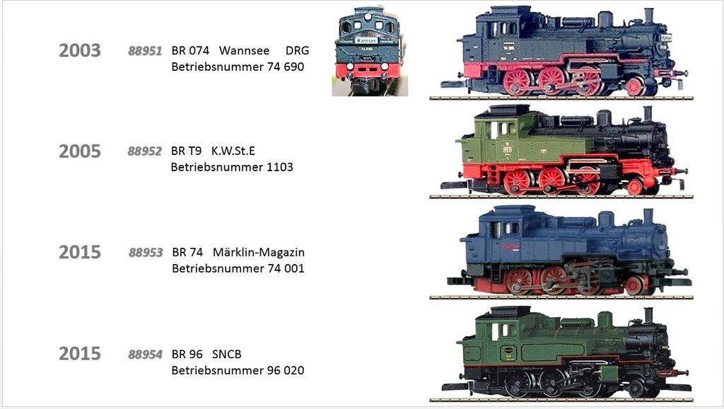 Hier noch einmal die verschiedenen Z-Loks der BR 89