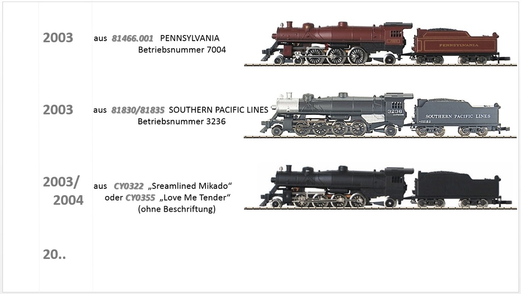 in diesem Thread beabsichtige ich einige Z-Loks zusammenzustellen, die im Laufe der Jahre herausgebracht wurden und auf einem Märklin-Grundmodell basieren.