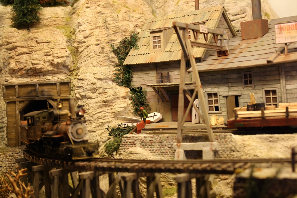 Kein Z zu sehen ist schade.... nur das kann man in dem Rummel auch nicht präsentieren, höchstens in einem eigenem Raum......die Sprünge von den Spurweiten sind zu krass. 1 zu 48 und 1 zu 220 nebeneinander geht nicht, vielleicht integriert als Gartenbahn beim Sargschreiner?