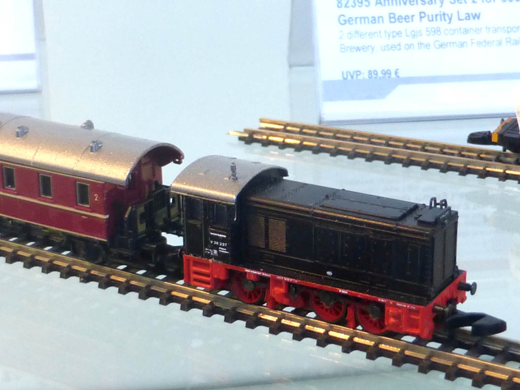 Mit Herrn Besenhart habe ich aber trotzdem noch für ein paar Minuten ein Schwätzchen halten können - die schlechte Nachricht ist, daß sich komplette Neuentwicklungen in Z nicht lohnen würden. Die gute: Was er in N schon mal konstruiert hat, kann er meistens mit wenig zusätzlichem Aufwand auf 1:220 herunterskalieren. Insbesondere bestehen gar nicht so schlechte Aussichten, daß der Oberammergauer Lokalbahnzug dereinst auch in unserer Größe angeboten wird.