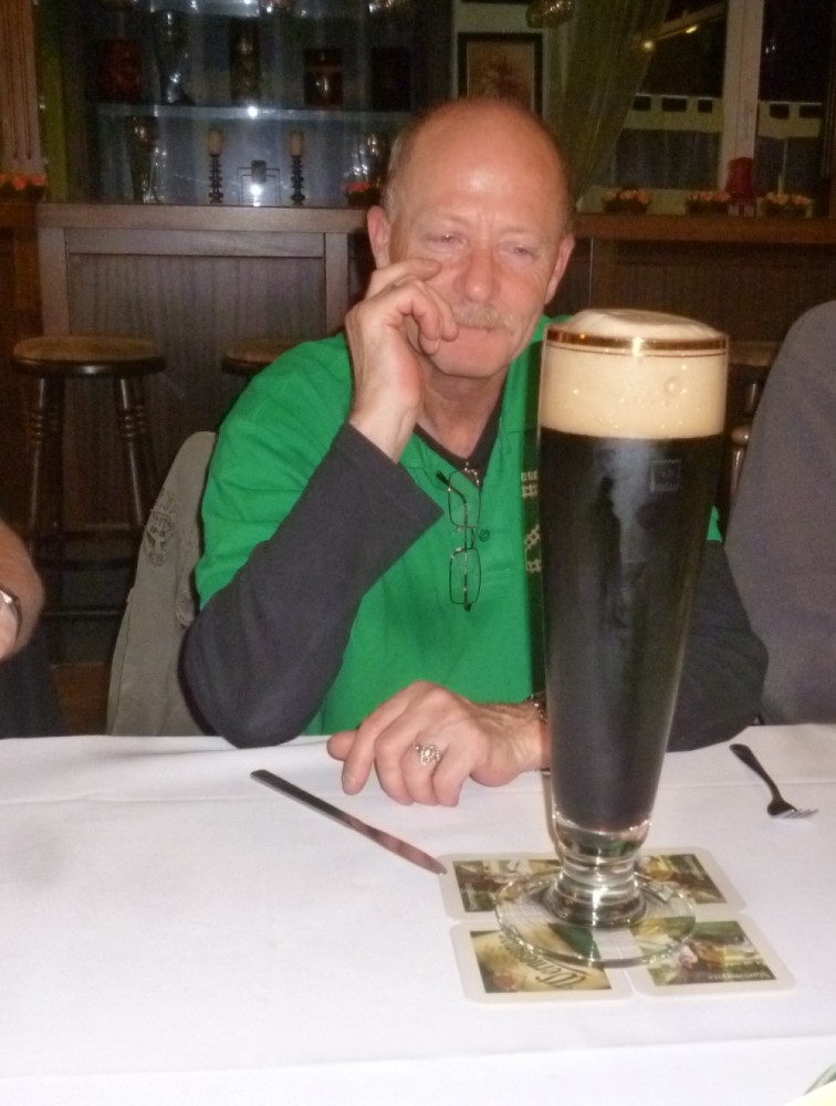 Auf dem Foto ist Schorsch gerade mit seinem bescheidenen Bierchen zu sehen