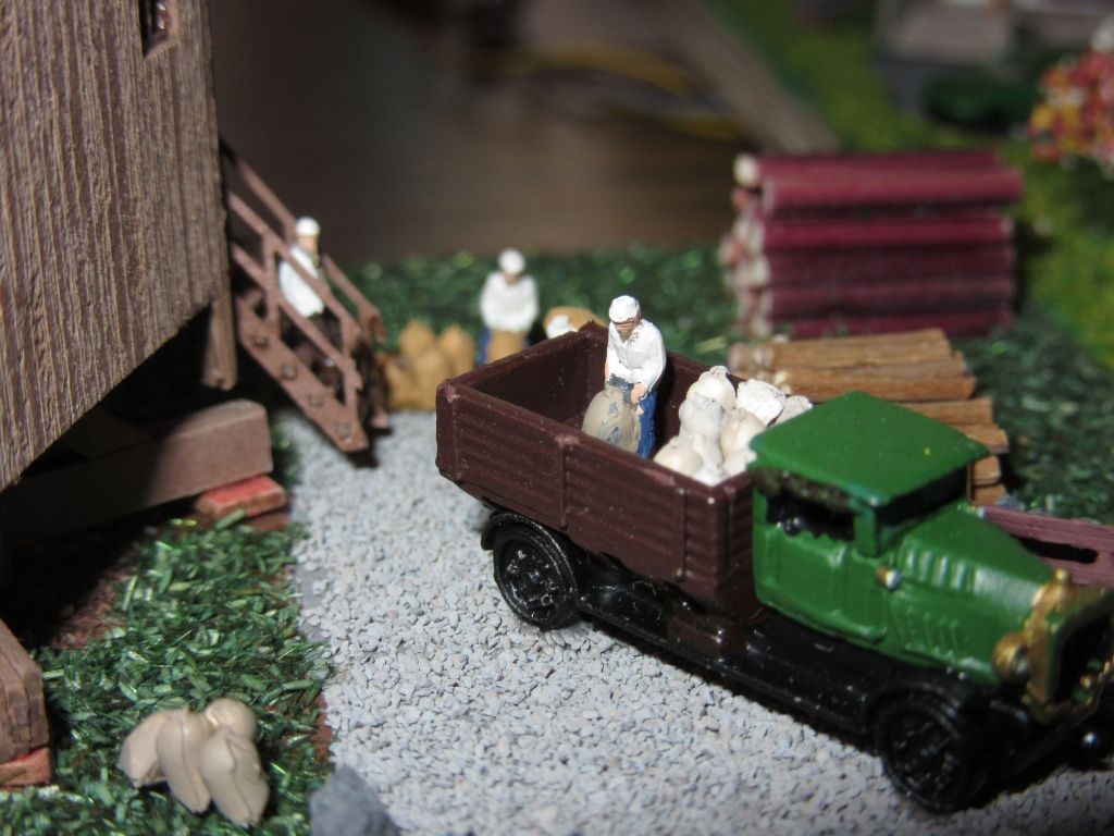 Behältertragwagen der KBE (Köln-Bonner-Eisenbahn), diese waren bis Mitte des letzten Jahrhunderts im Einsatz. Damit wurden in den Wirren der Nachkriegsjahre Braunkohlebrikets transportiert. Die Behälter entstanden nach Originalplänen aus Neusilber 0,15 mm Stärke. Sie gehören allesamt Heinrich O. Müller aus Bonn.