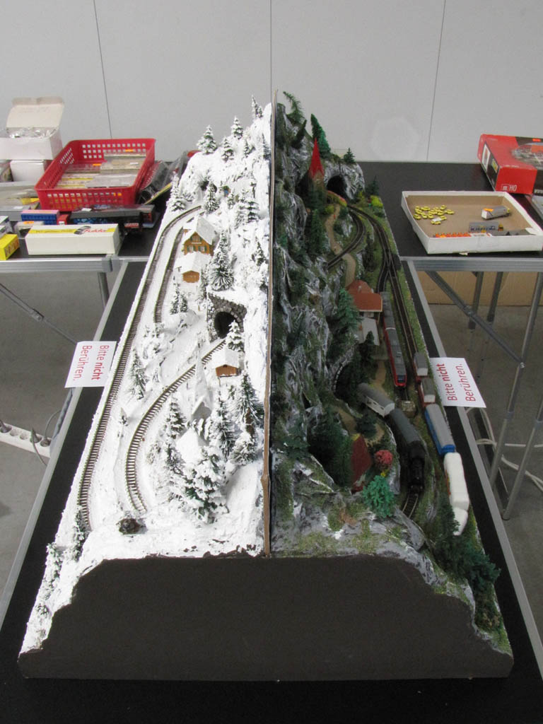 Erst einmal der diesmal aus Gründen, die der Veranstalter zu vertreten hatte, übersichtlich gehaltene Spur-Z Stand: