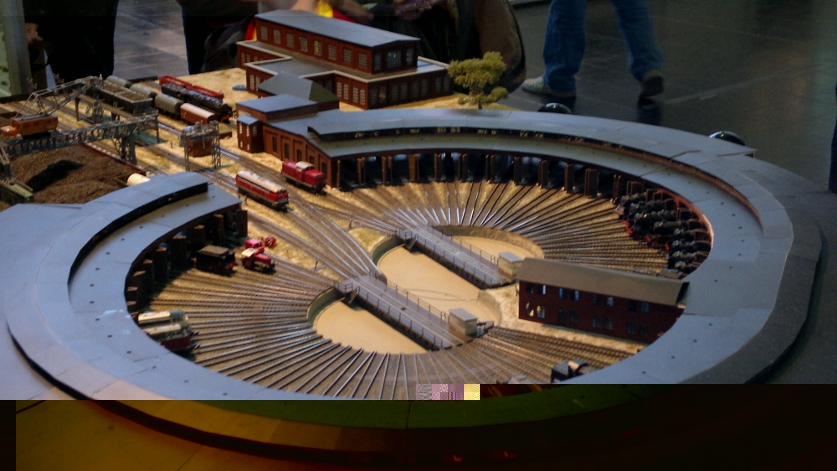 Also beim Stammtisch Untereschbach waren zwei Dioramen, das Fussballstadion und die Baustelle mit den beweglichen Teilen, unter einer Plexi-Haube.