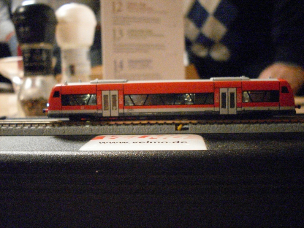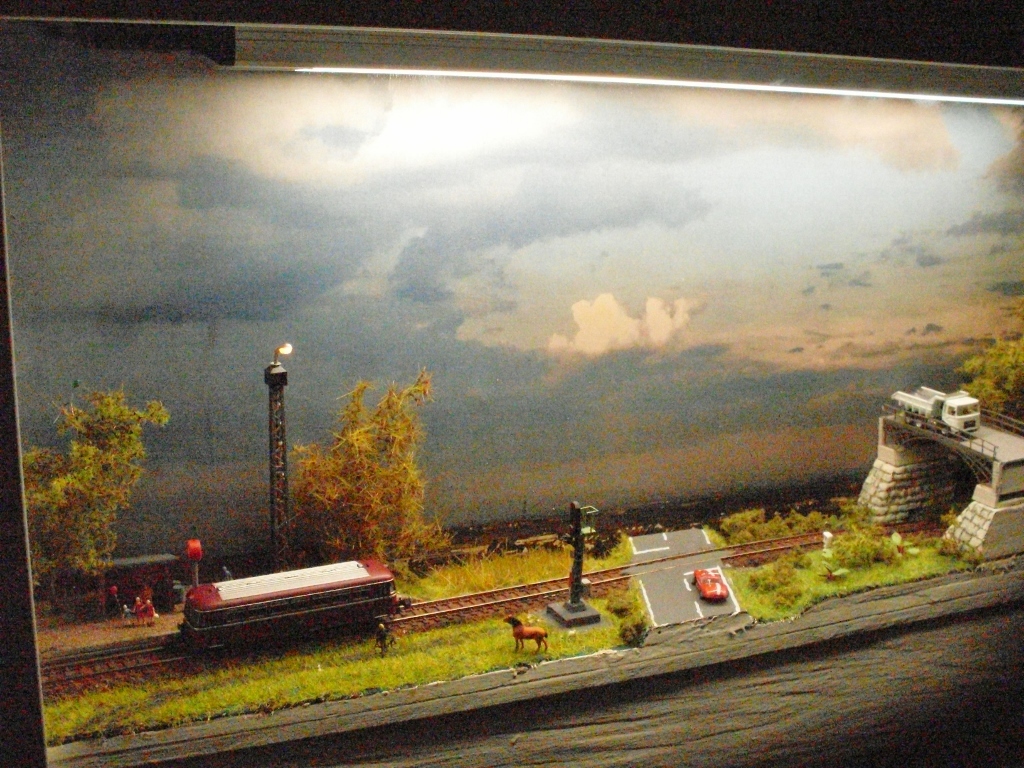 zwei kleine Dioramen in einem Bilderrahmen, bei dem einen pendelt ein Schienenbus die BR 650 von SMZ und noch ein bisschen was, was an dem Abend sonst noch so über die Brettchen rollte. viele Grüße