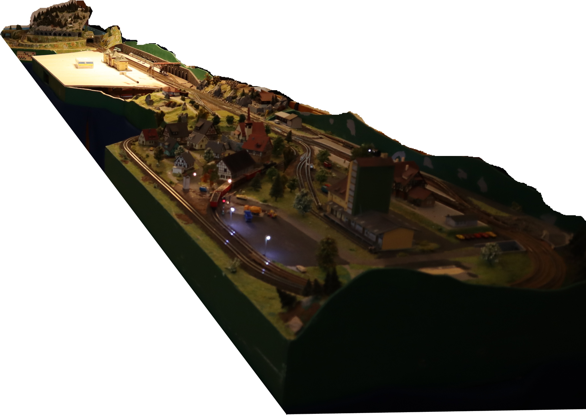 das ist meine Anlage „Dingenskirchen“. Sie hat jetzt in Zell Uraufführung und ist bisher unveröffentlicht. Vor 2wei Jahren habe ich mit dem Bau begonnen und jetzt endlich auf die Zeller Ausstellung hin die letzten Kinderkrankheiten beseitigt.