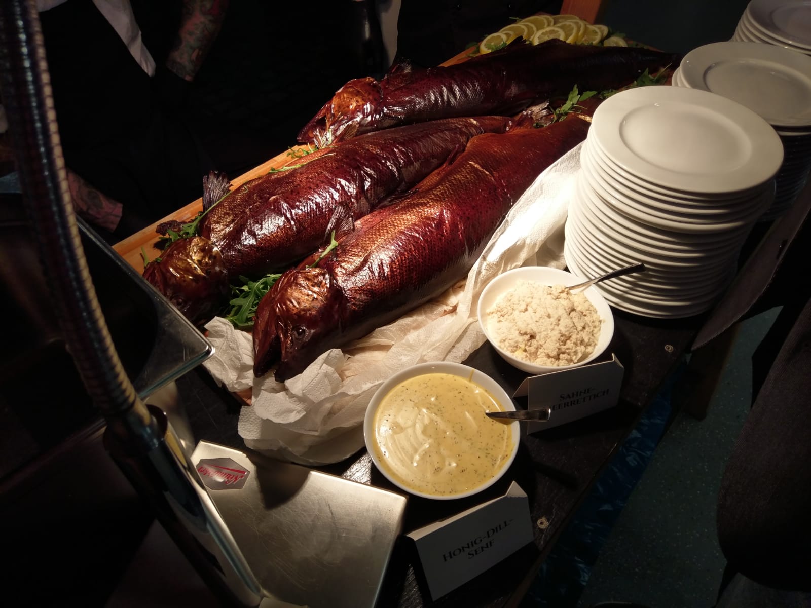 Nach der harten Zuschauerarbeit tagsüber gab es dann am Samstag abends die Veranstaltung nur für die Aussteller mit etwas zu essen und viel Spaß bei den Dampfbahnern, die uns nach dem Essen durch die Halle gefahren haben.