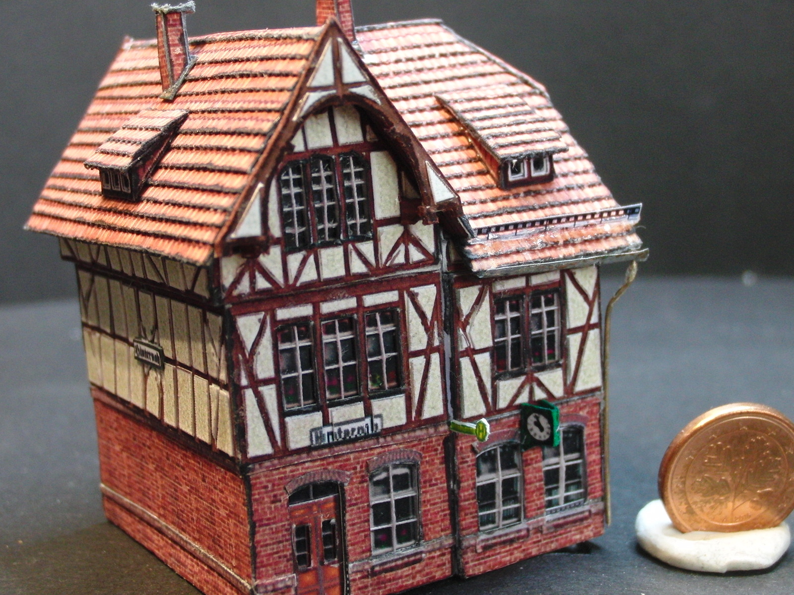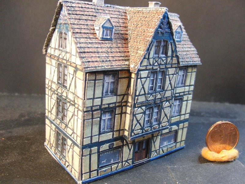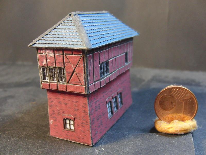 Aufwändige Gestaltung durch mehrlagigen Bau, Echtfenstersprossen, 3D-Dachgestaltung, viele sehr filigrane Details, z.T. beleuchtet. Gerade diese kleinen Modelle beleben das Geschehen einer Anlage. Bauzeit pro Haus ca. 3 - 6 Stunden.