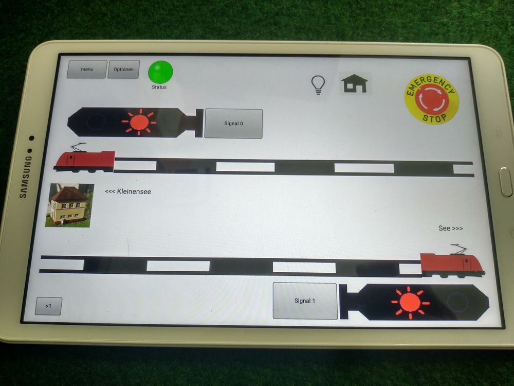 Obwohl ich nur zwei Signale und es ebenso viele beleuchtete Häuser gibt habe ich dafür ein digitales Stellpult gebaut. Die Steuerung erfolgt über Arduino und die App Roboremo.