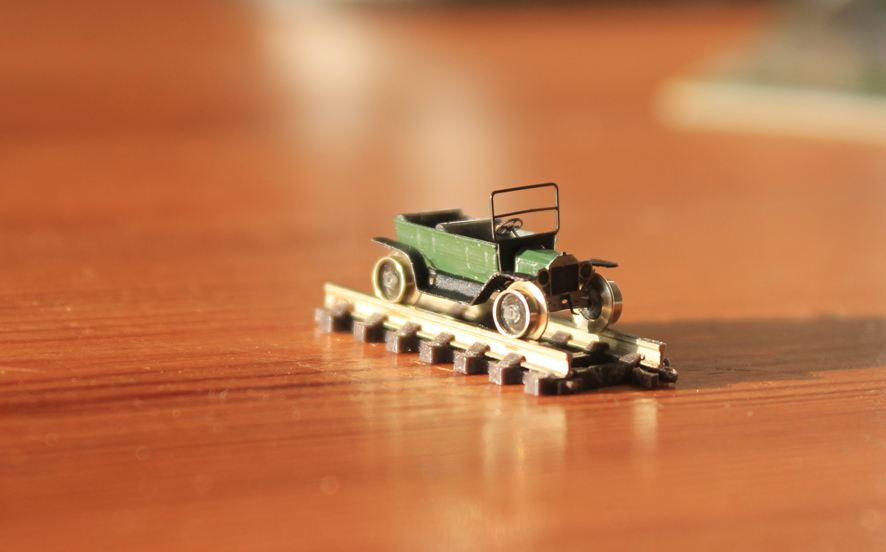 Der "Schienenfloh" beruht auf dem Vorbild des Ford T, der auf einigen Eisenbahnen auch als Inspektionsfahrzeug eingesetzt wurde. Er ist rollfähig und findige Zetties können ihn sicherlich mittels eines Magneten zum Laufen bringen ohne ihn vorher ankurbeln zu müssen.