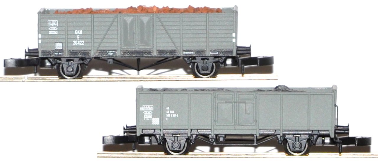 Harald Freudenreich hat wieder für den Wiener Z-Stammtisch zwei Stammtischwagen produziert. Vorbild sind zwei offene Güterwagen der Graz-Köflacher-Bahn (GBK) im charakteristischen Grau. Diese Privatbahn wurde ursprünglich errichtet, um Kohle, die in der Umgebung von Köflach abgebaut wurde, in den Ballungsraum Graz zu bringen. Heute sind diese und weitere Bahnstrecken der GKB in der Weststeiermark wichtig für den Nahverkehr.
