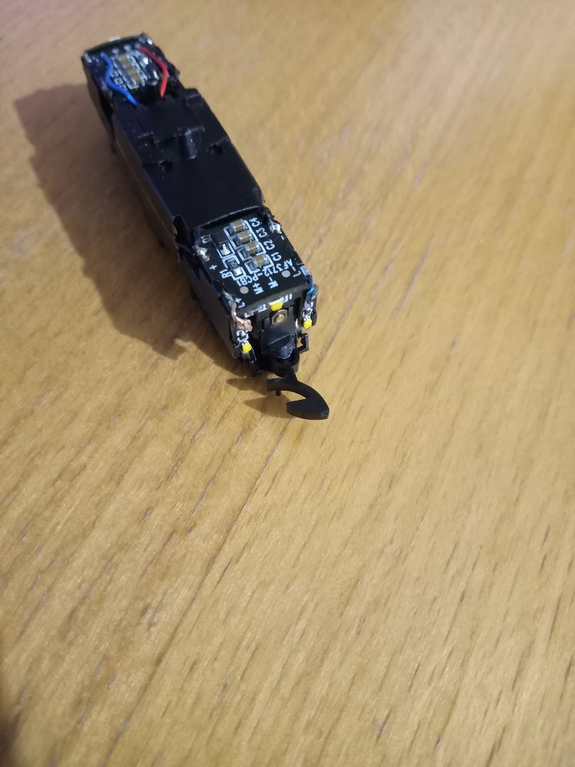 Das ist sehr spannend: Wenn man das Führerhaus abnimmt, kann man das Chassis von oben aus dem Gehäuse drücken und muss nicht an den Drehgestellen ziehen...