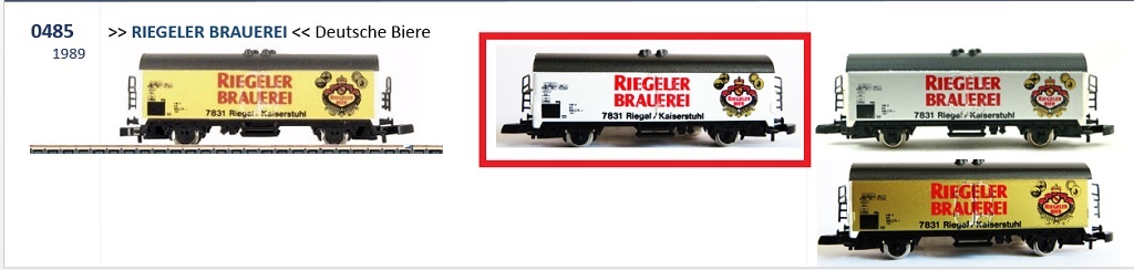 im Lauf der Jahre tauchten Märklin Werbewagen auf, die mit gleichem Druckdesign in der Miba/Monkliste zu finden sind, sich aber hauptsächlich in der Grundfarbe unterscheiden.