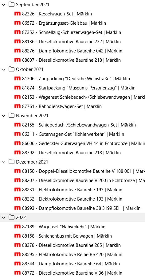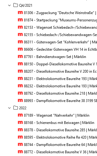 Und wenn man noch ehrlicher wäre, dann würden vom Q4, dass doch in den letzten Jahren deutlich H0-lastiger war, sicher noch einige Modelle in 2022 rutschen. Top-Kandidaten dafür sind aus meiner Sicht der Vectron, die 38-Bronze sowie die V188.jerkel hat geschrieben: Di 11. Mai 2021, 16:16 ...schon gar nicht vor Auslieferung dieser Epoche VI Version, die für Q4/2021 angekündigt ist und - soweit wette ich - noch einigen Verzug erleiden wird.