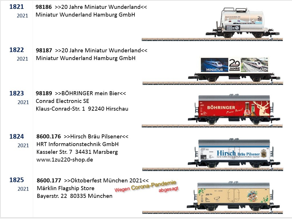 Nein, ich hab es nicht gewusst, aber geahnt. Und ein Oktoberfestwagen 2021 ist auch in der Mache, https://www.maerklin-store-muenchen.com ... -muenchen/ obwohl das größte Volksfest auch in diesem Jahr nicht stattfinden wird.