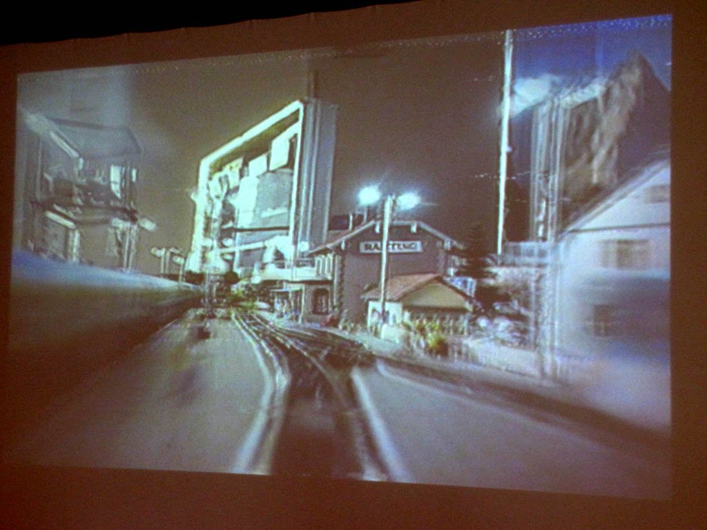 ...und übertrug seine Bilder auf einen Beamer an der Deckke und von dort auf die aufgestellte Leinwand.