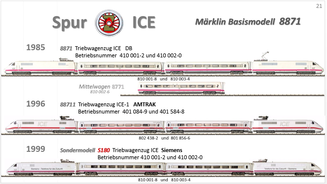 den Siemens-Zug habe ich nicht. Aber auf den Fotos, die ich dazu mal gesehen habe, sind das auch alle Elemente eines "normalen" 8871, nur dass die Triebköpfe noch einen Werbeaufdruck erhalten haben "Siemens - Telefone für die Zukunft". Also: