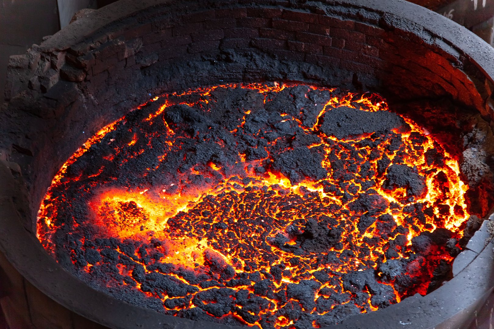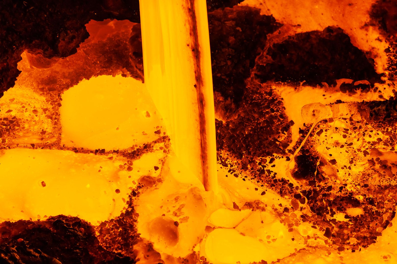 Some years ago, I was on a tour at a metallurgical plant for the purpose of a photo report, where I managed to take a big number of unique pictures of crude iron in many different conditions. Among them, there was a photo of molten iron loaded into the ladle car – taken almost directly from above. I remember that it was rather dangerous task – surely, not because of the risk of falling down, but because of the very high temperature around the car, which did not even allow you to get anywhere close to it. I was able to make only few steps forward and stay there for not more than 3-4 seconds, taking a serial shooting with my camera, after which I quickly jumped back away. Here is one of these pictures: