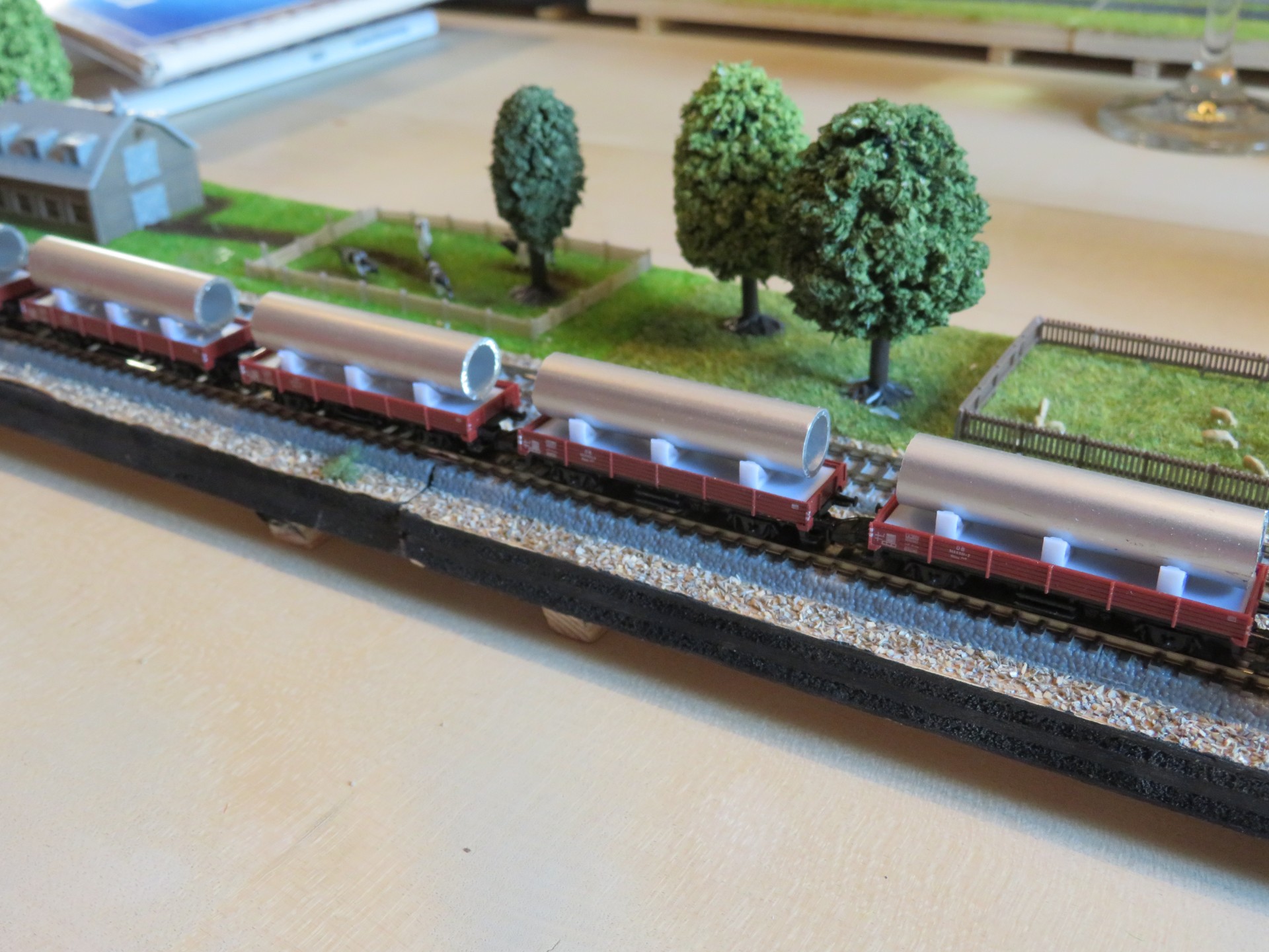 wenn Du den Schrottzug meinst, ist aus dem Winkel nicht zu sehen. Da gibt es Ladegut. Das sind die Wagons von der Intermodellbau 2021 😇