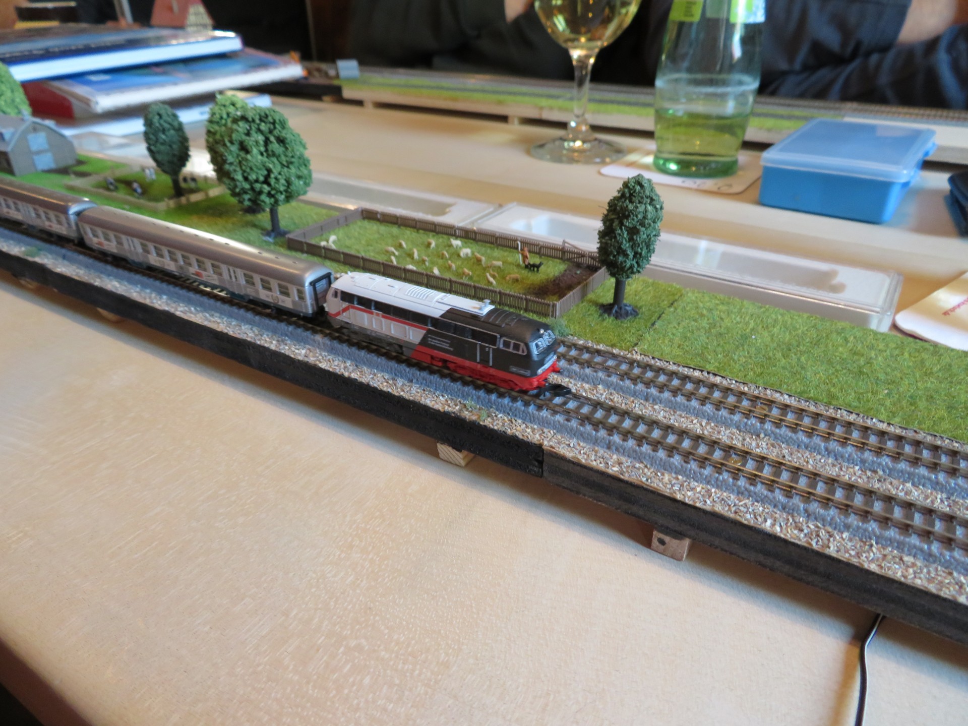 Neben Fachsimpeln, Berichten zu neuen Bauprojekten, leckerem Essen und feinen Getränken ist die Modellbahn nicht zu kurz gekommen.