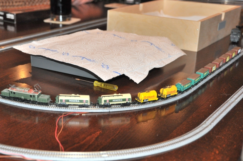 ja, es war mal wieder ein super Stammtisch. Sehr gefreut haben wir uns, nachdem Gunnar fremdgegangen ist :D , dass uns Peter besucht hat. Peter erzählte uns, dass diese Stätte seine Modellbahnaktivitäten positiv in Richtung Digitalisierung beeinflusst hat. Und Olaf, Du solltest Deine Brille mal putzen. Meine "Errungenschaft" ist auf dem MTL-Testkreis garnienicht gefahren. Also auch nicht im Moment der Aufnahme. Und überhaupt schminke ich mich zum Z-Stammtisch schon lange nicht mehr :D