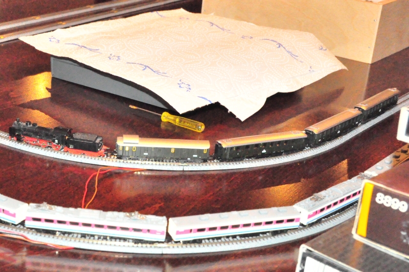 Caro und meine Modelleisenbahn haben den Sturz gut überstanden (Caro ist mit dem Fuß auf der Treppe umgeknickt). Vielen Dank für alle Nachfragen.