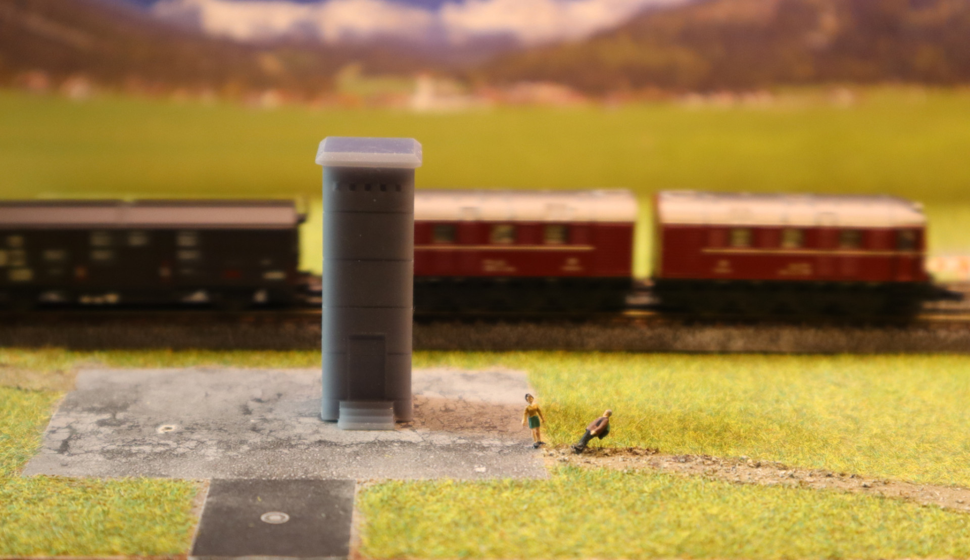Aus dem 3D Drucker wurde dieser Versuch eines Trafogebäudes vorgestellt