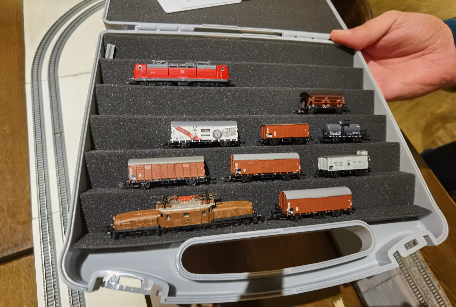 Gerhard hatte seine V188 am Start mit 24 Güterwagen, die problemlos auf dem Oval aus Stammtischbrettchen ihre Runden zogen