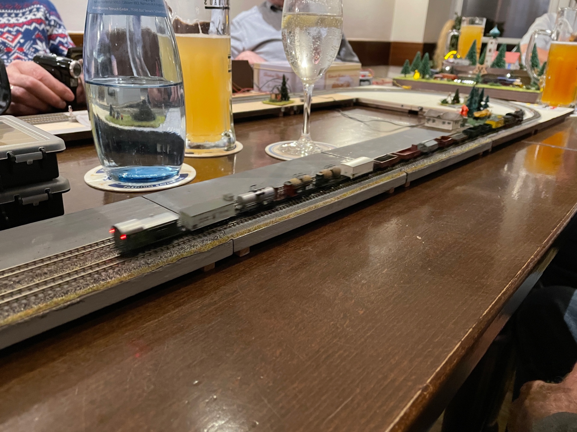 Das digitalisierte Krokodil von Matthias (Decoder von Alex) zog ebenfalls einen Güterzug auf den Stammtischbrettchen
