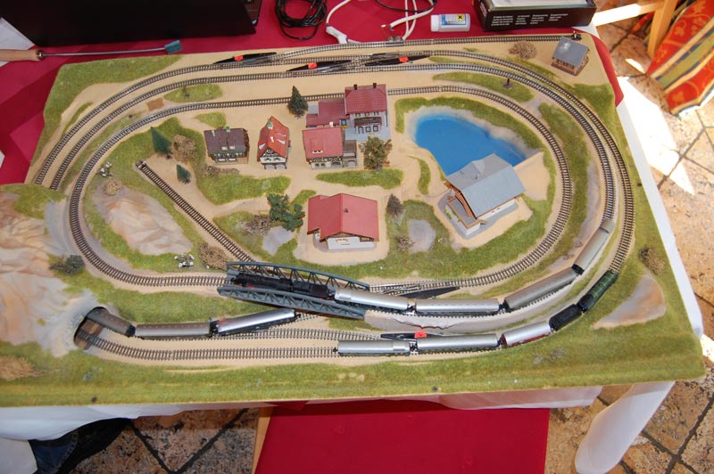Er brachte unter anderem ein selbstgefertigtes, klappbares Gleisoval mit, das auch gleich mit seinen wunderschönen Modellen ausprobiert wurde.