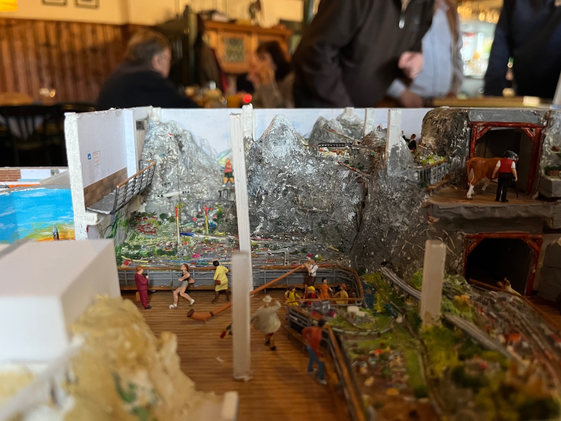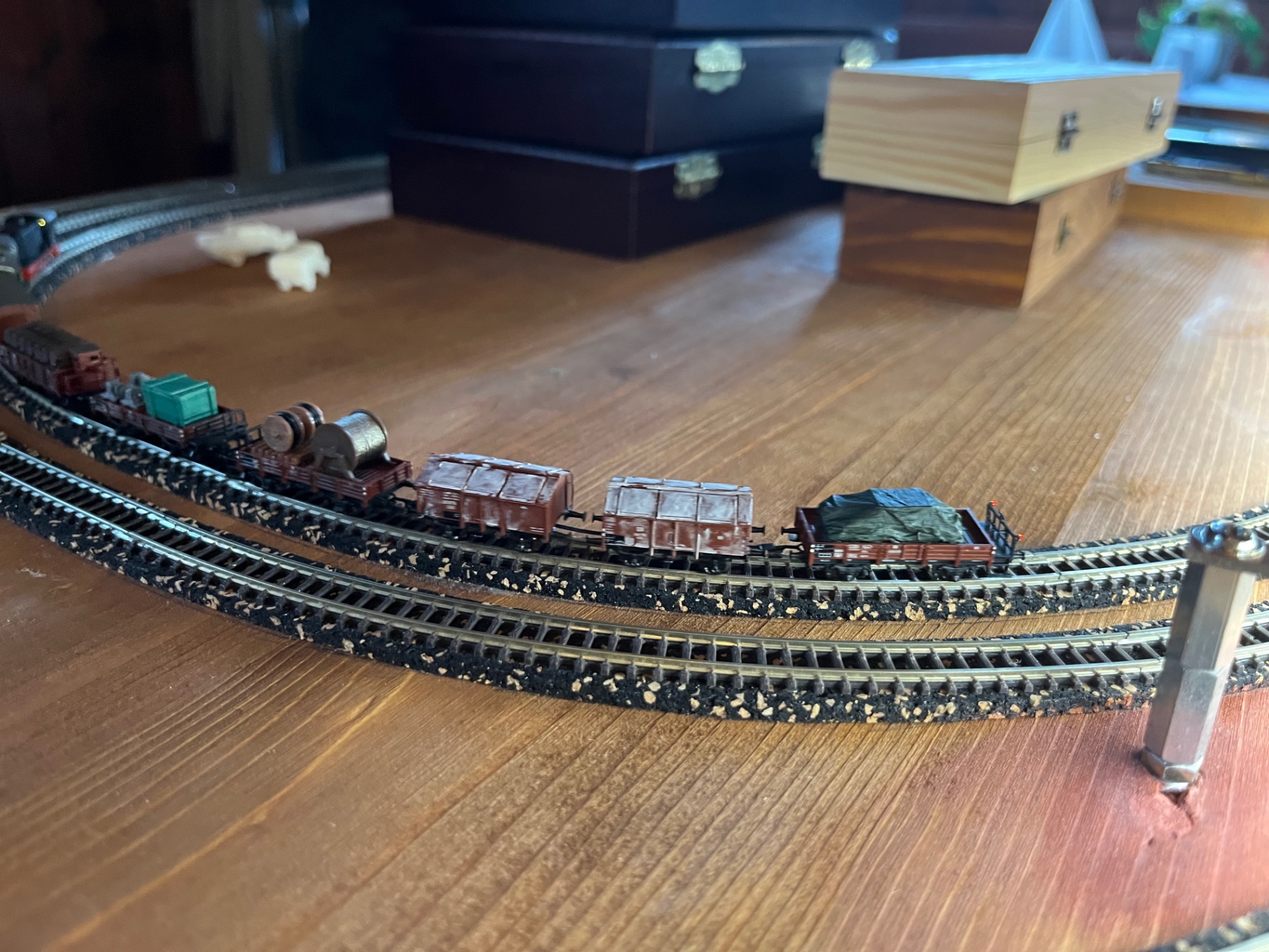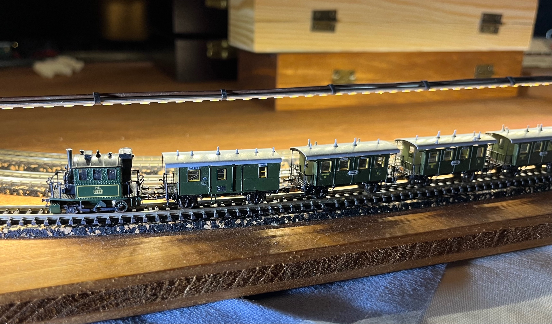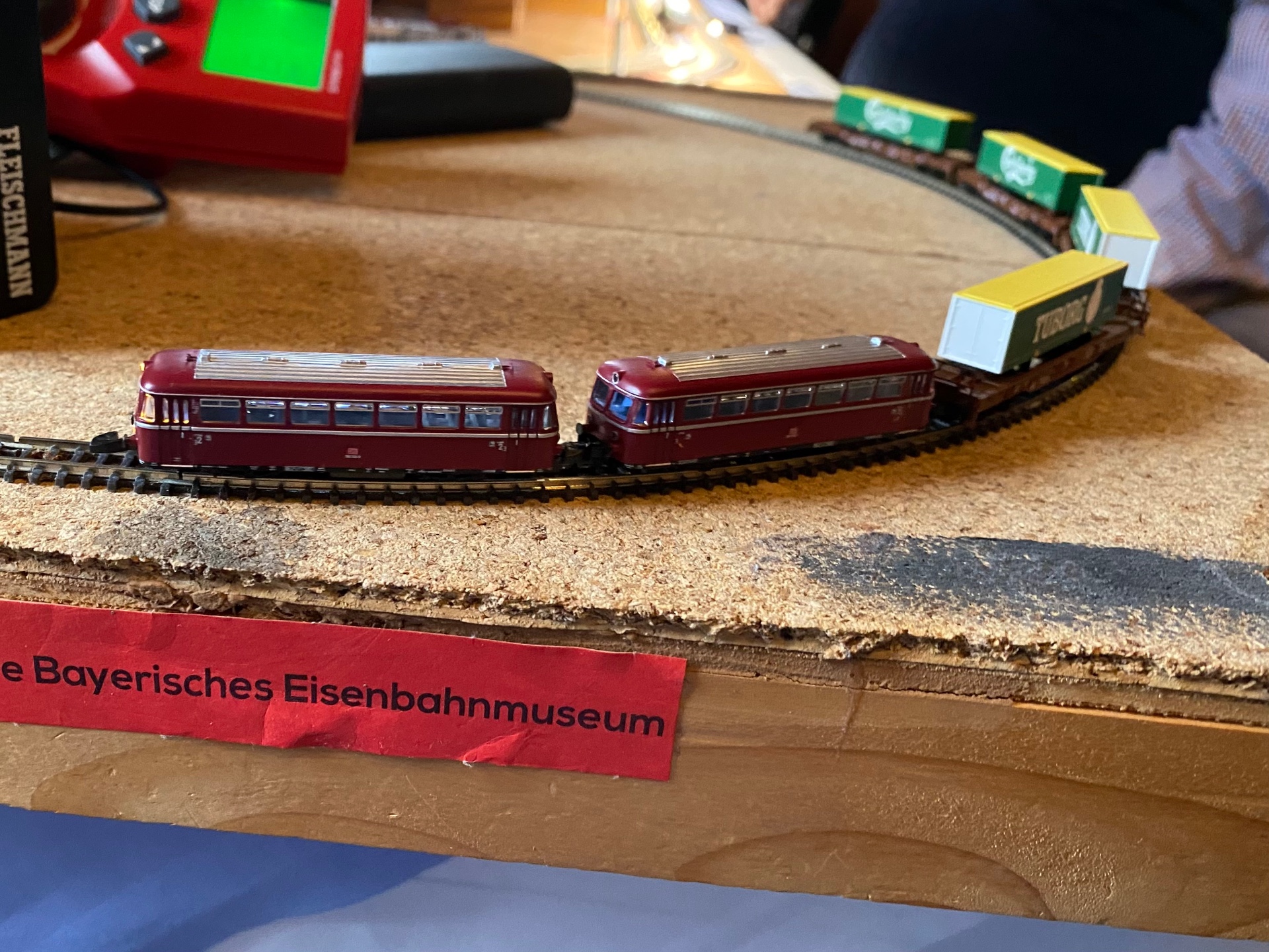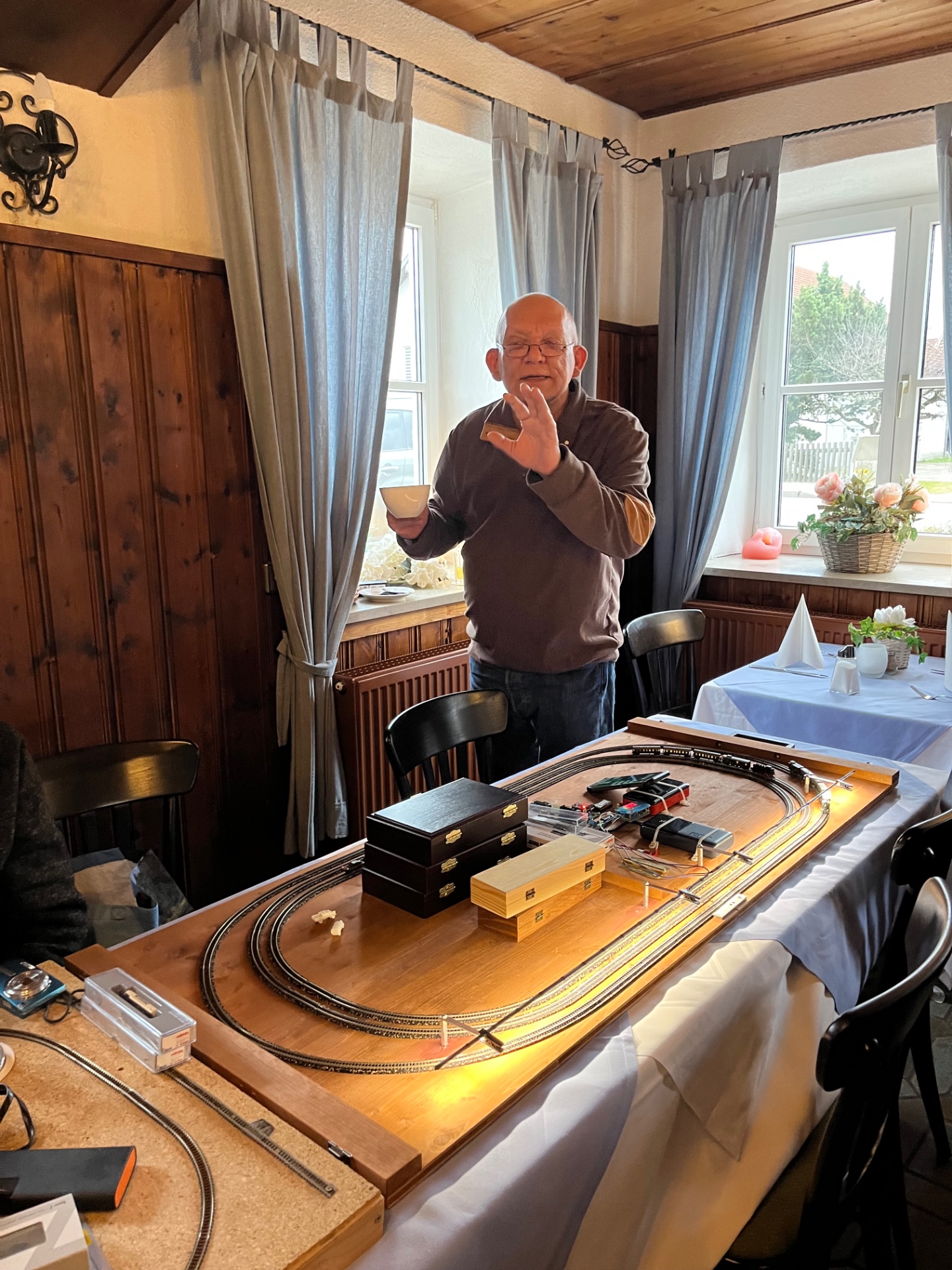 Ein neuer Besucher hat Teile seines 1:87 Modells des MiWuLa dabei. Beeindruckend! Hagen hat einen digitalen Dr.Scheibe-Glaskasten als Doppeltraktion mit einem Geisterwagen dabei. Die Fahreigenschaften sind beeindruckend! Stilleben von Klaus Moser Ach ja, zu Essen und zu Trinken gab es auch...