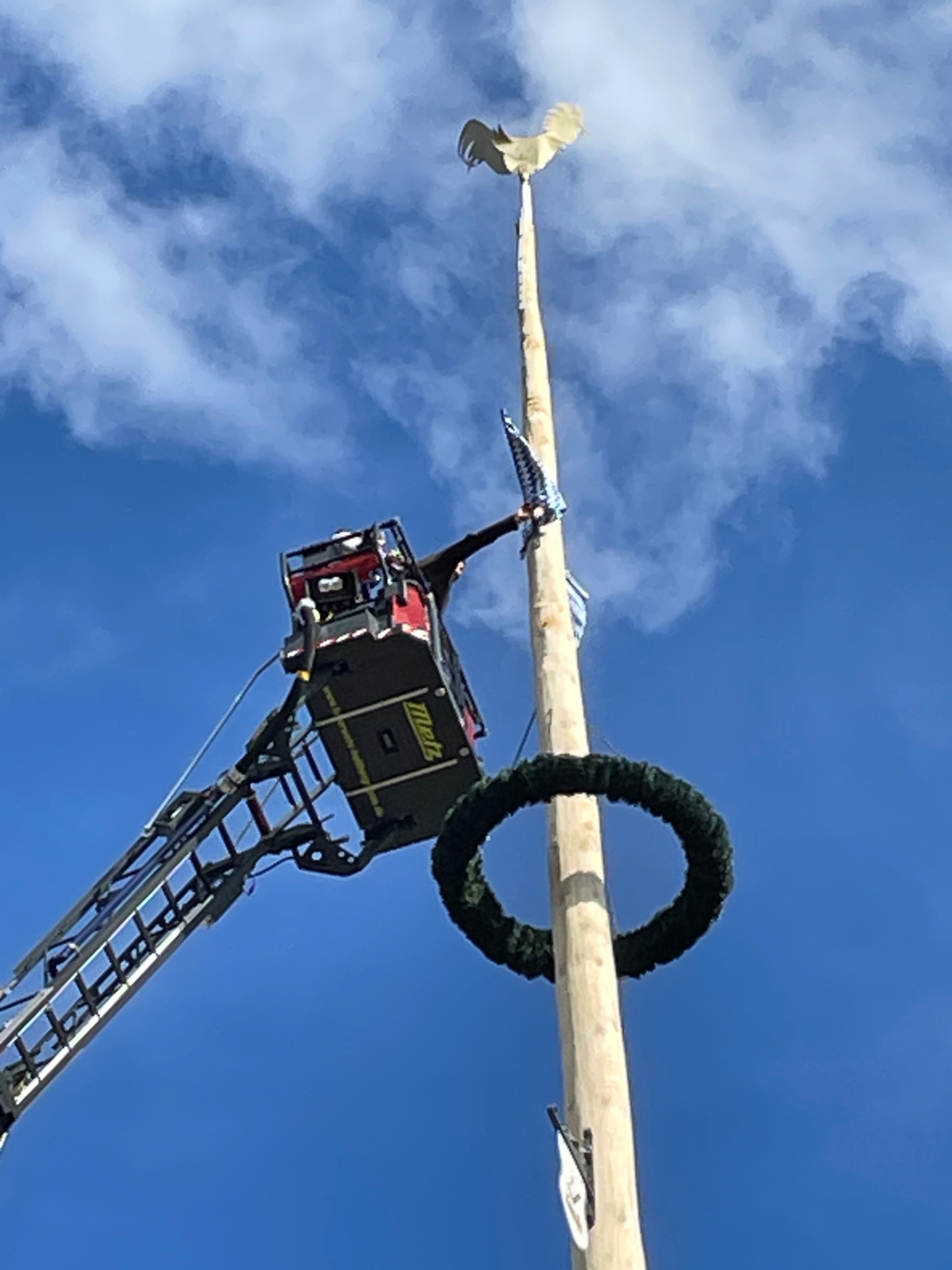 Danke für die Bilder vom Maibaum aufrichten. War schon ein gewaltiges Stangerl! Der letzte vor 3 oder 4 Jahren war deutlich schlanker und kürzer und wurde von einem Traktor/Frontlader aufgestellt.