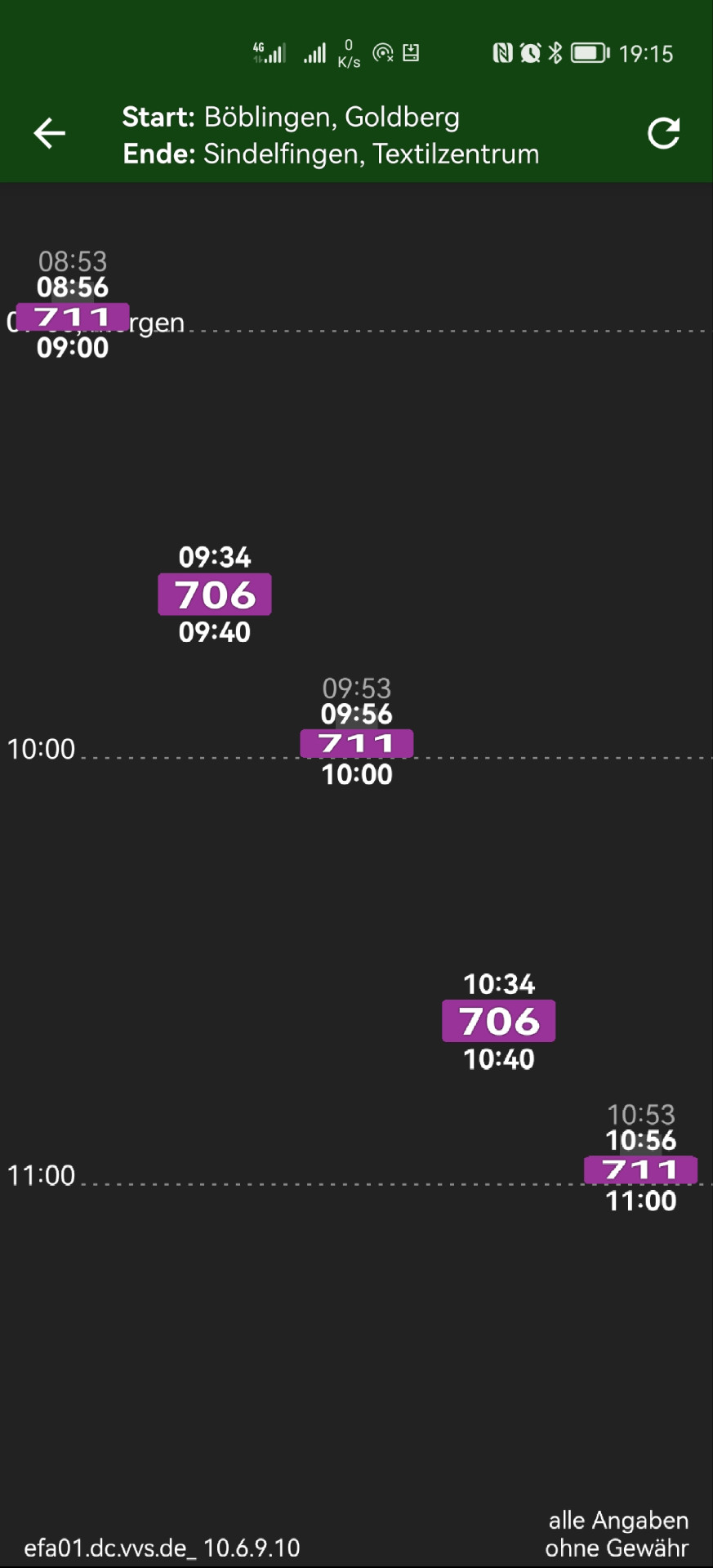 Bus ab Goldberg, Auszug aus der FahrplanApp "Öffi"