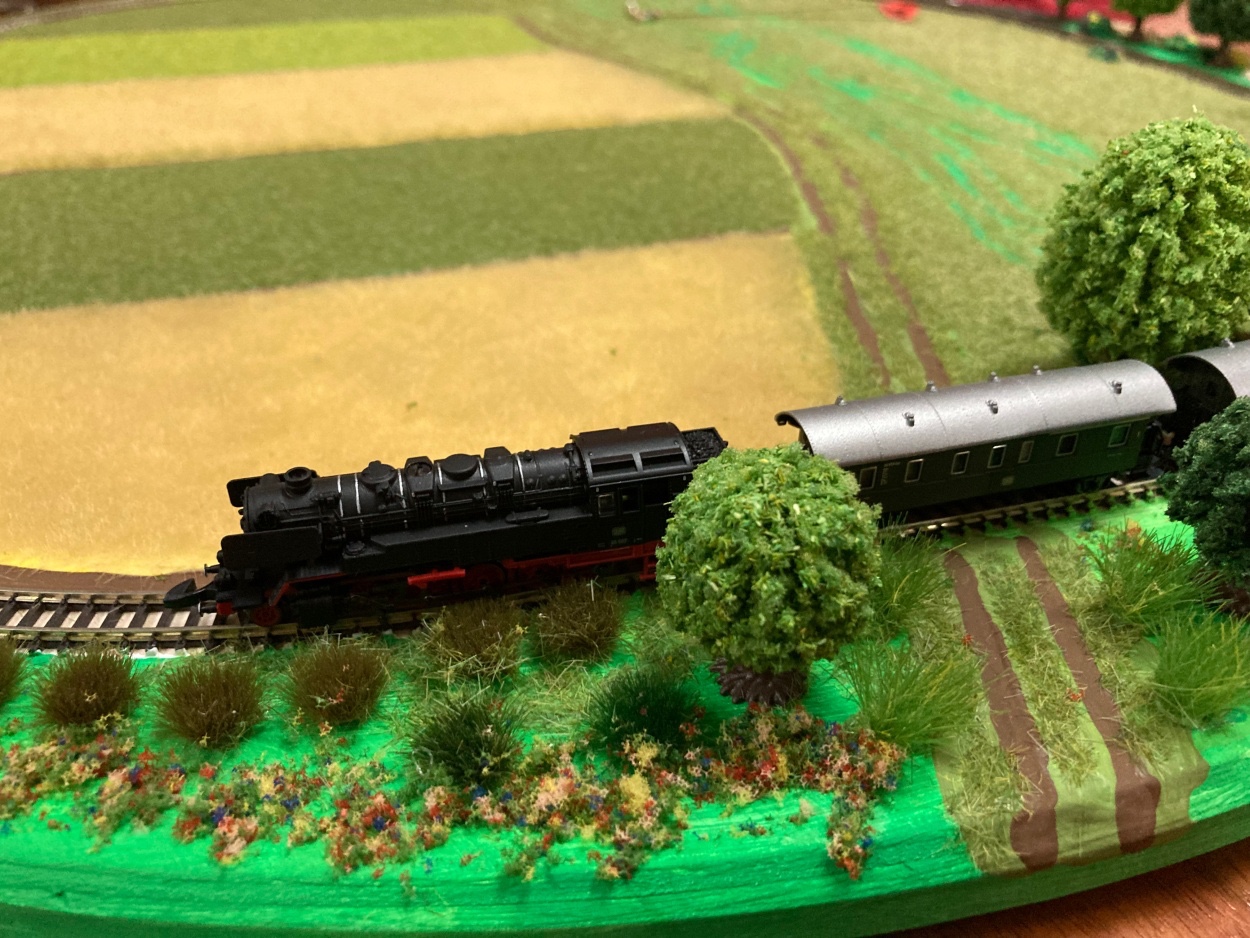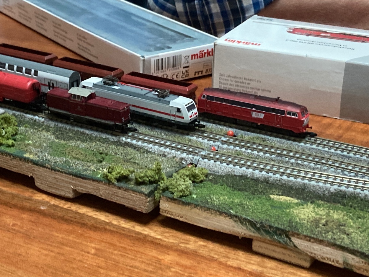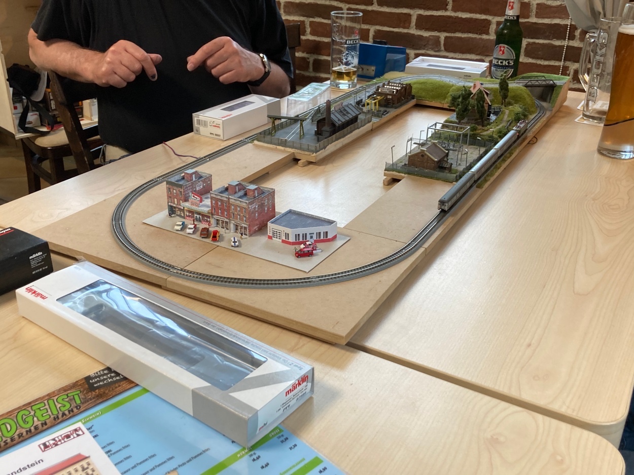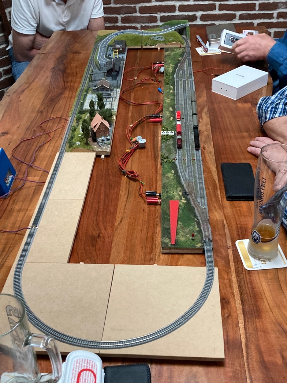 Mai Stammtisch, mit Gespräche über verschiedene Materialien im Gebäudebau, Zubehör, verschiedene Modelle und fahrende Züge.