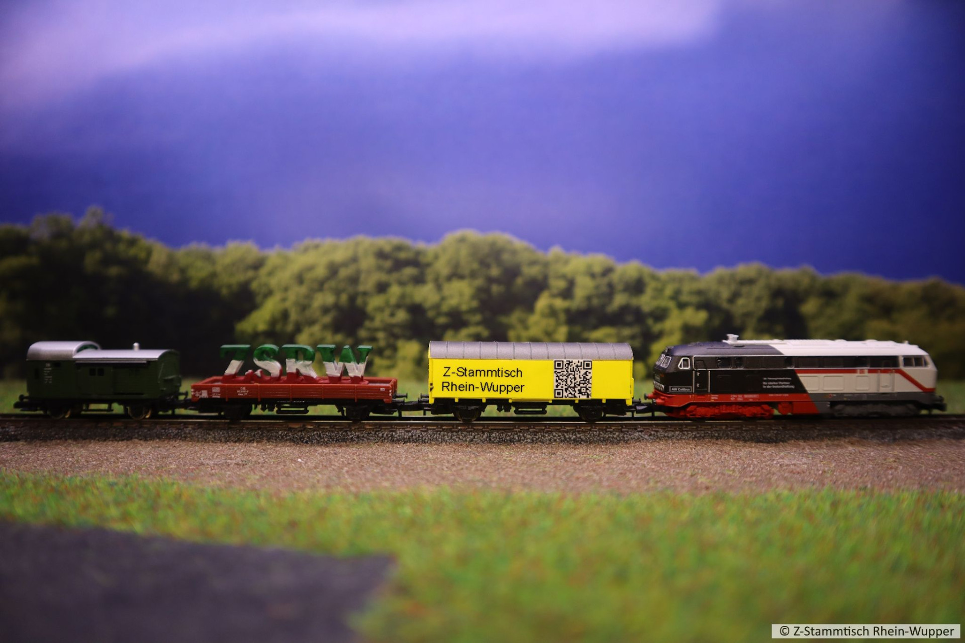 Zum Start drehte unsere Stammtischzug seine Runden. Diesen Monat ergänzt mit einem Gastwagon vom Stammtisch Schorndorf (8612.047)