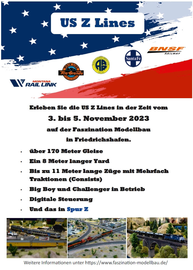 (www.trainmaster.ch). Er legt dort unsere Inforblätter zu den USZ Lines in FN aus und hat auch ein DIN A3 Plakat bekommen. Ein weiteres nimmt er mit zur US Convention am 7. und 8 Oktober in Neuendorf Schweiz.