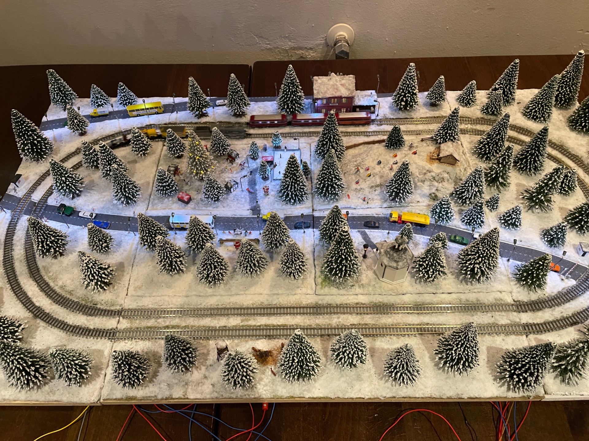 Karl hat gezeigt, wie MBZ-Gebäude farblich behandelt werden, Volker hat seine neuen Schneebrettchen gezeigt, Jürgen hatte eine uralte BR 216 mit neuem Faulhabermotor dabei, mein Kurzschluß wurde gesucht, auf der Brettlesbahn war Betrieb und Klaus hatte seine mobile Kleinstanlage dabei.