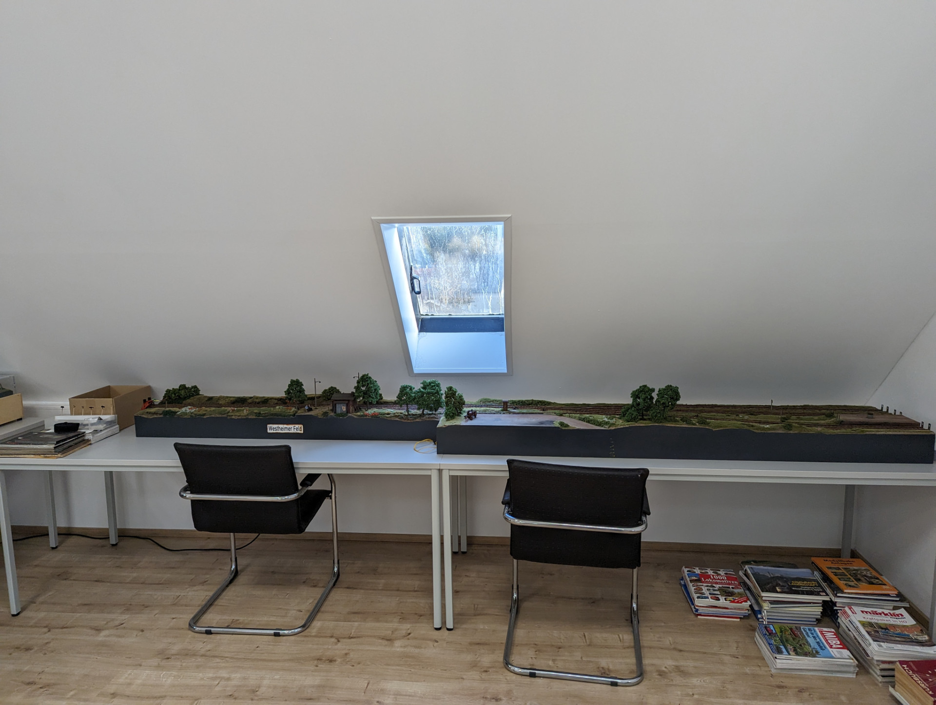 Die Spur 0 Module aus dem Laden sind nun im Ausstellungsraum in der südlichen Dachschräge.