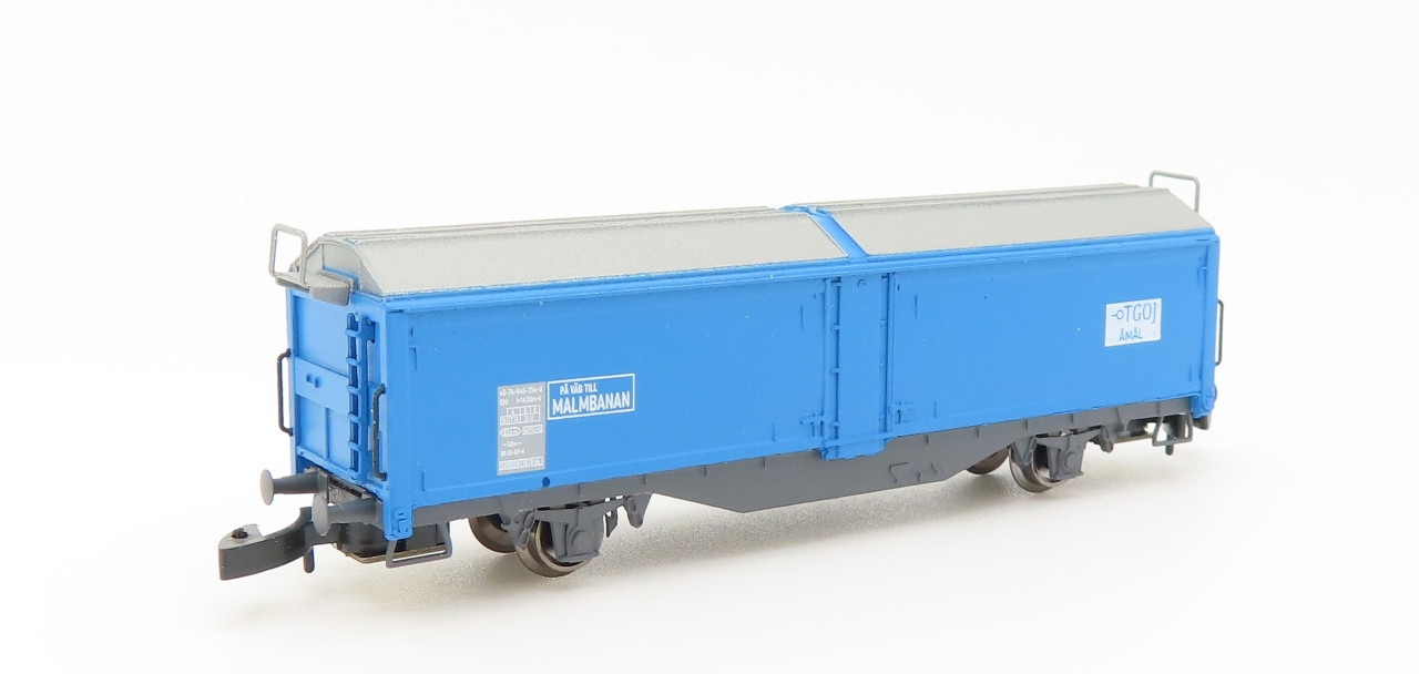 Es handelt sich um einen Materialwagen der privaten Eisenbahngesellschaft TGOJ (Trafikaktiebolaget Grängesberg-Oxelösunds Järnväger mit Hauptsitz in Eskilstuna).