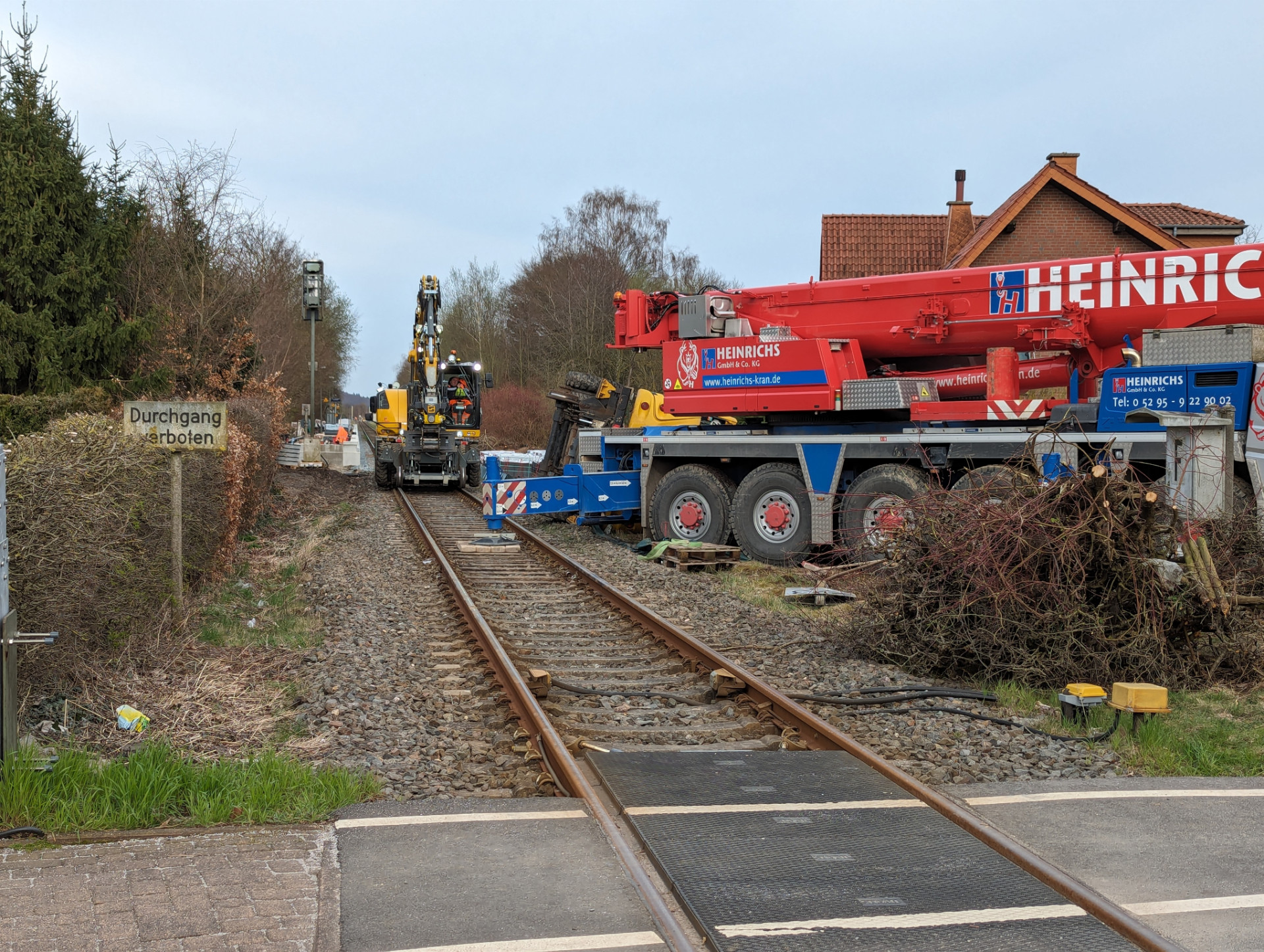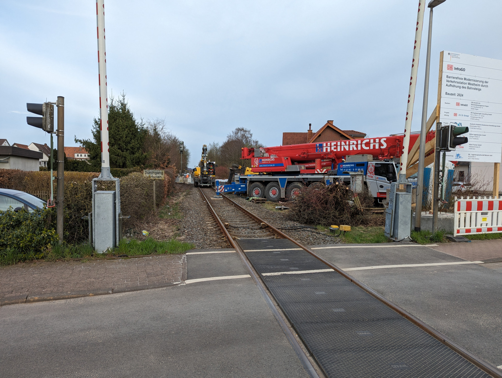 Es wird nicht langweilig in Westheim. Bei uns wird gerade der Bahnsteig erneuert und dabei auf Gardemaß erhöht. Dabei wurde heute Mittag ein 2-Wege-Bagger umgeworfen, der gerade mit viel Aufwand wieder aufgerichtet wird.