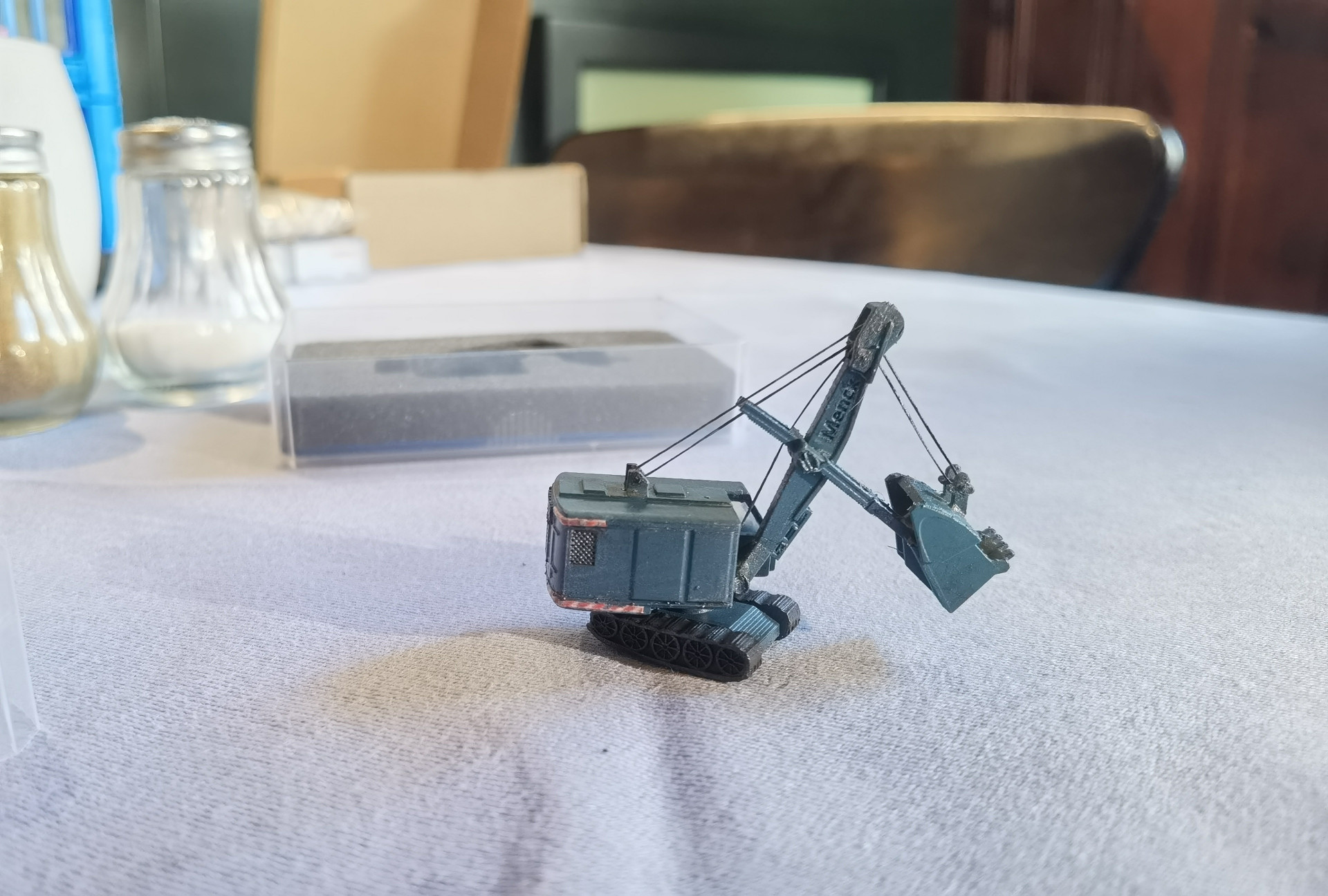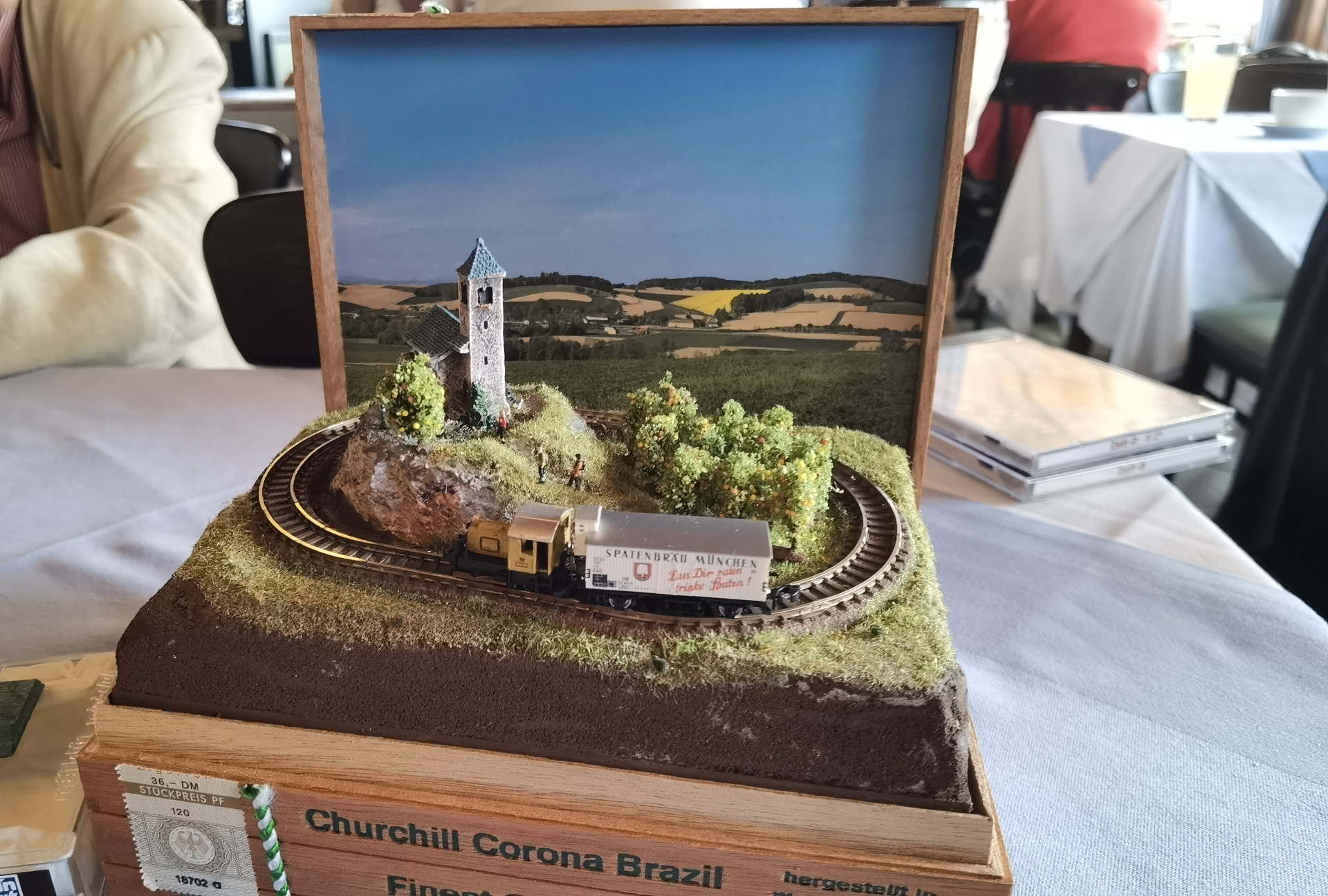 Minianlage in der Zigarrenkiste mit Geisterwagen, digital gesteuert mit ESP und Smartphone via WLAN