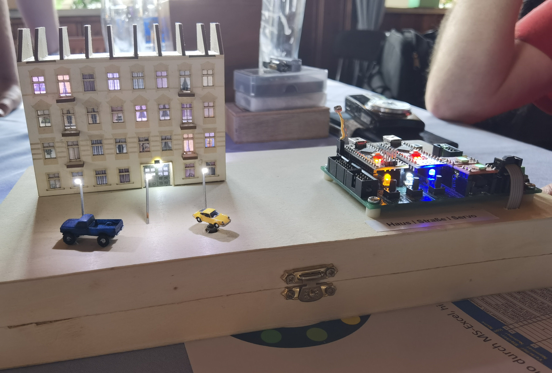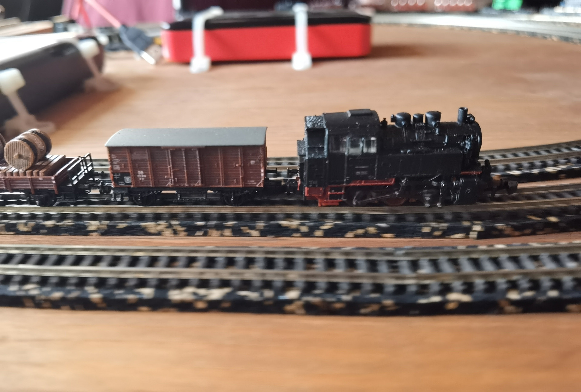 Minianlage in der Zigarrenkiste mit Geisterwagen, digital gesteuert mit ESP und Smartphone via WLAN