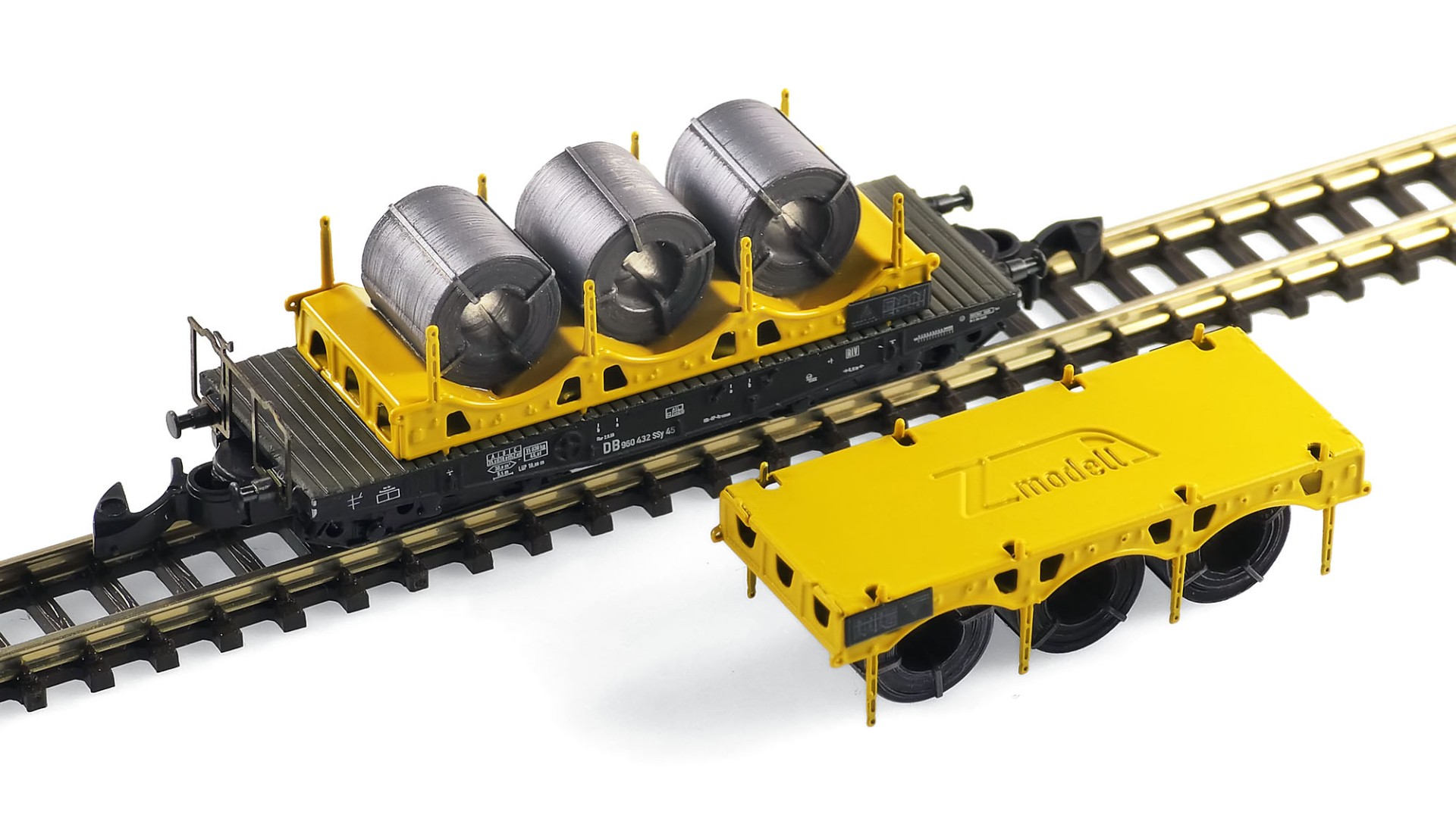 The loads are made entirely of metal and provide a very high level of realism. The base framework is made of 0.3 mm nickel silver and offers many intricate details and half-etched elements. The part is assembled using PCB hot air soldering technology with soldering paste normally used for assembly circuit boards with SMD components. It is then airbrushed with RAL 1023 "Traffic yellow" lacquer paint.