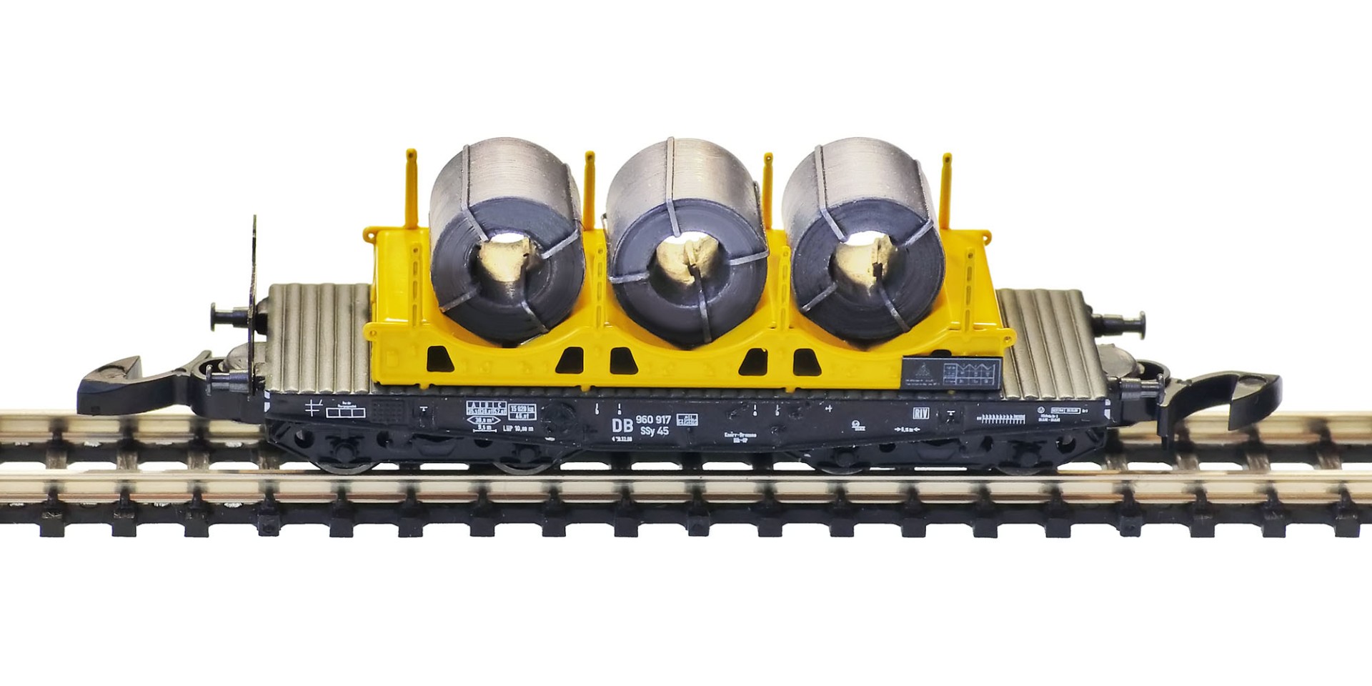 I would like to introduce two new types of load inserts that are similar to each other, but completely unique as such - steel coils for two types of heavy-duty flatcars - 6-axle SSym 46 and 4-axle SSy 45/Rlmmp 700. This is the most advanced kind of loads I ever produced.