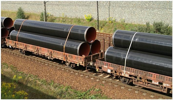 I added some photos here showing how these big diameter pipes are transferred on type Klms 3430 2-axle flatcars in real life: